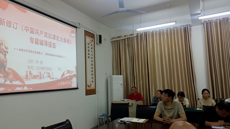 2024年5月8日,医技系党总支书记钟俊以“新修订《中国共产党纪律处分条例》专题辅导报告”为题,在3号教学楼120会议室为全体党员干部带来了一场深刻而生动的党课。此次党课旨在进一步加强党员干部的政治纪律意识,确保党的纪律要求在教育领域得到全面贯彻。