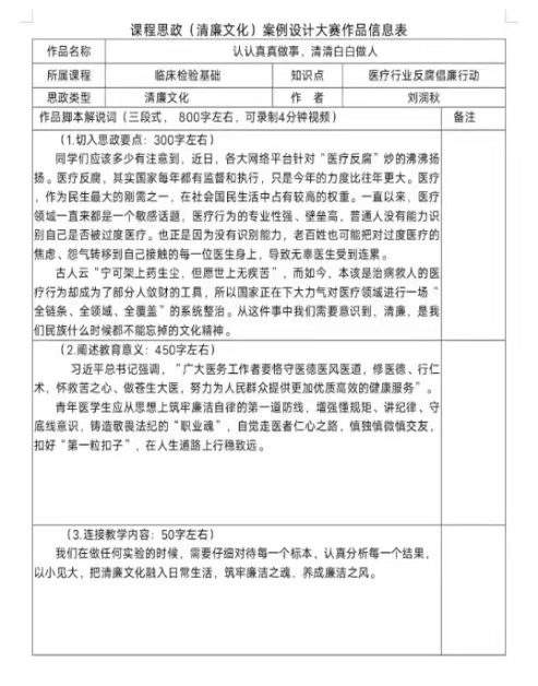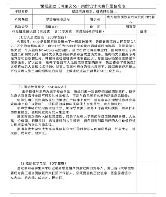 10月16日至26日太阳成集团tyc539举办课程思政(清廉文化)案例设计大赛。案例设计选取一个课程知识点,恰当融入清廉文化,通过靶向施教原则,向学生宣传廉洁文化,帮助学生树立正确的价值观。