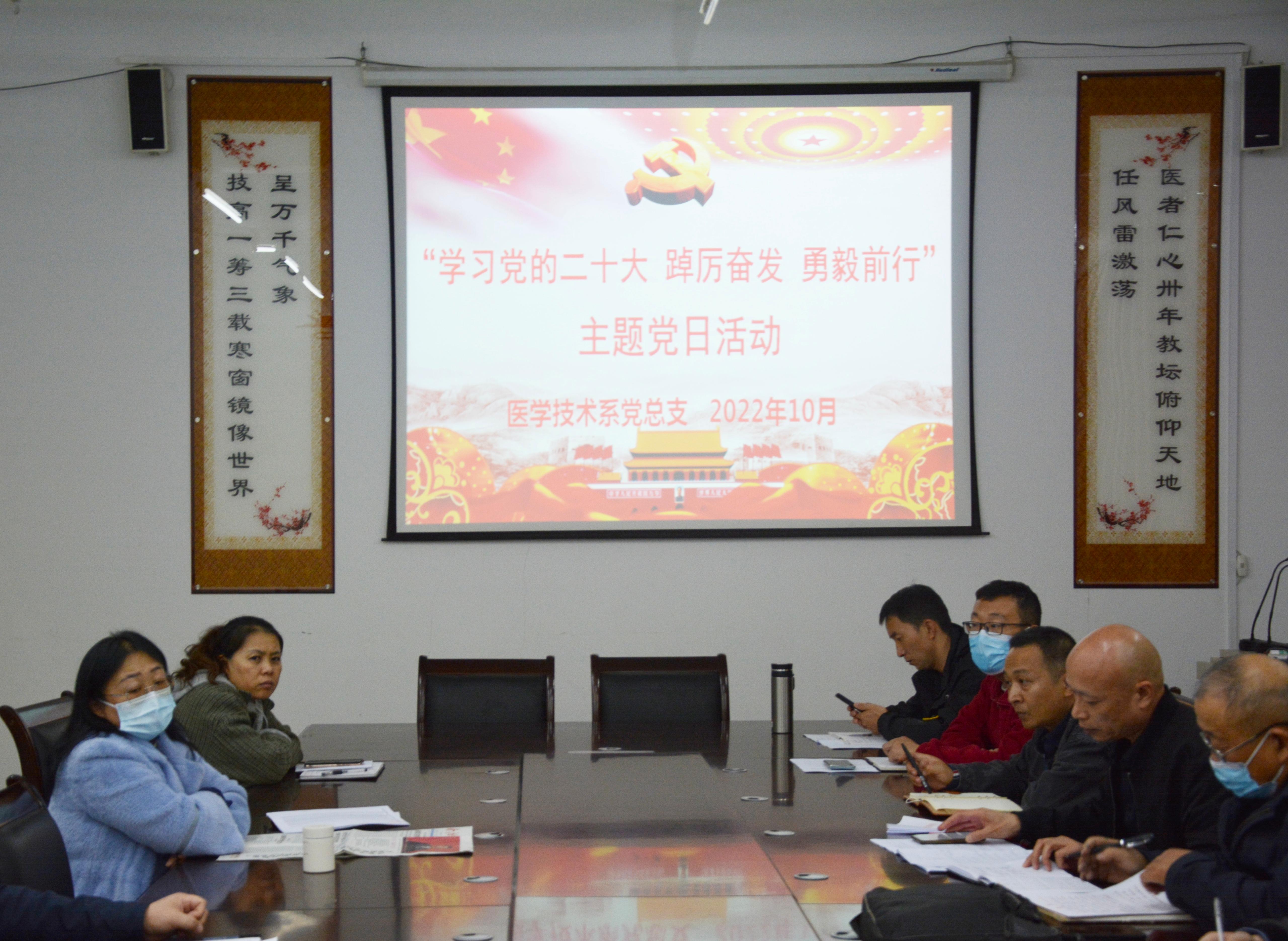 本网讯(图文/太阳成集团tyc539记者站  杨草原)10月26日下午,太阳成集团tyc539党总支组织开展的“学习党的二十大,踔厉奋发、勇毅前行”主题党日活动于仲景西区三号教学楼120会议室开展。