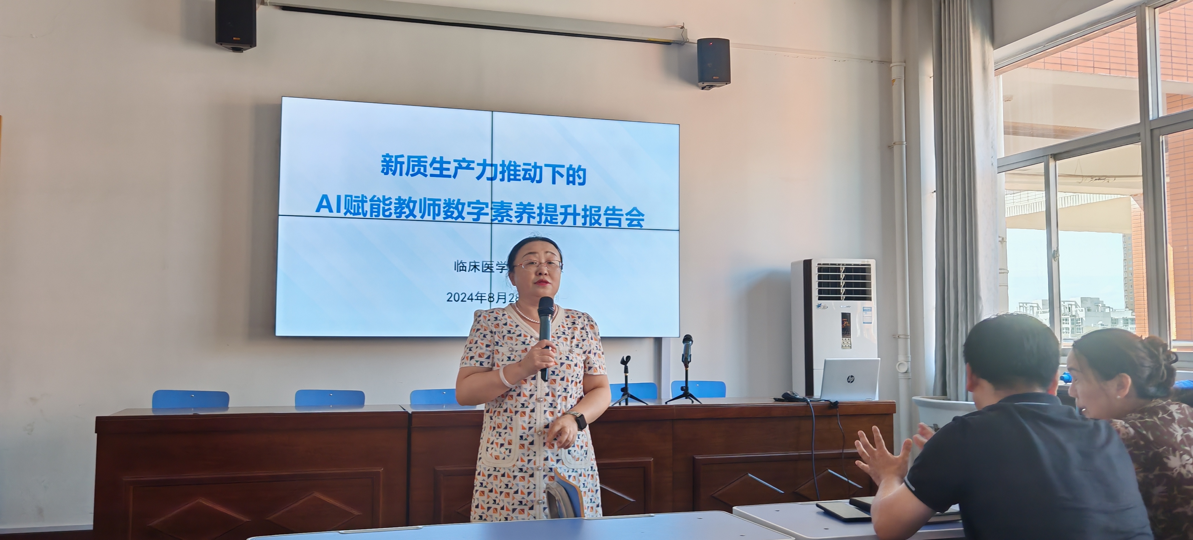 2024年8月28日下午,开学伊始,临床医学专业群举办主题为“新质生产力推动下的AI赋能教师数字素养提升”报告会,专业群教师共同参加。报告会由临床医学专业群负责人李玲主任主持。