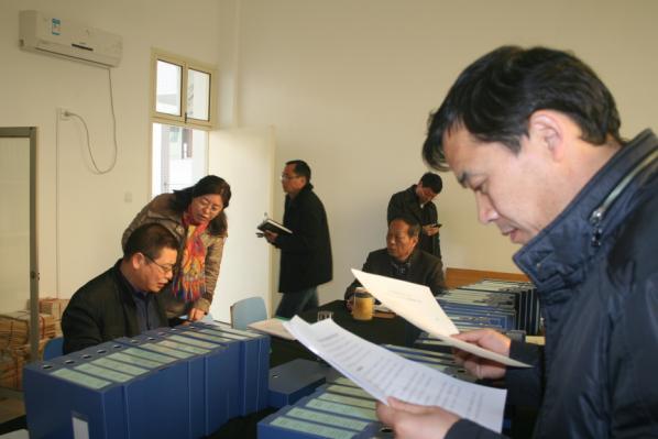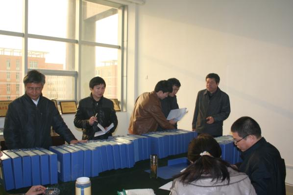 校评估专家组认真查看我系评估材料。