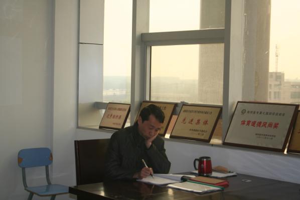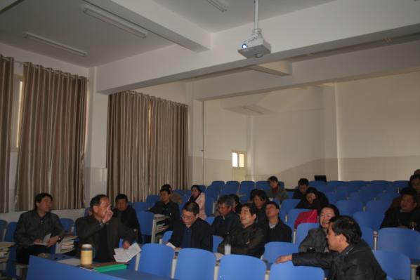 校评估专家刘荣志处长认真审查并修改我系评估材料中的不足之处。