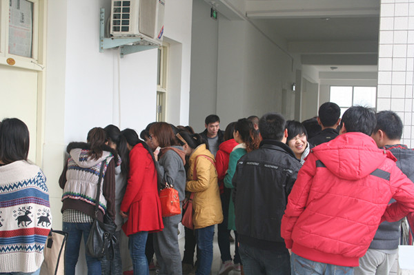 我系2013届毕业生积极报考“专升本”。虽然报名现场人员较多,经周密部署,各项工作有条不紊的进行。初步报考87人,现进入资格审查阶段。