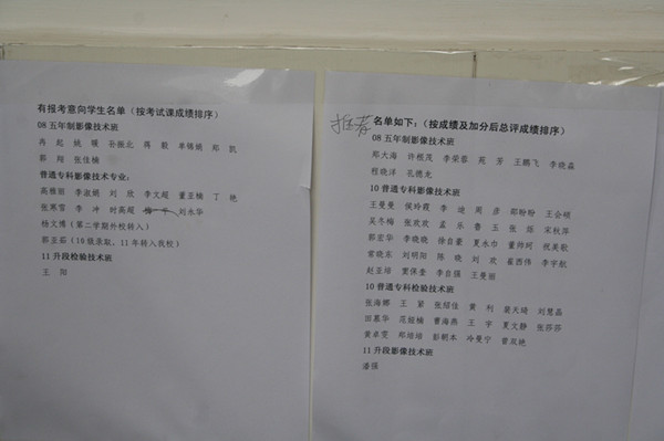 按照“专升本”工作公平、公正、公开的要求,根据河南省教育厅(教学【2013】180号)和南阳医专(宛医专学字【2013】9号)文件规定,我系领导高度重视,成立了“专升本”工作领导小组,全面加强对此项工作的领导。在认真征求意见、规范程序、严格核对的基础上,对优秀毕业生拟报考名单、报考意向登记和推荐成绩总评等进行了公示。