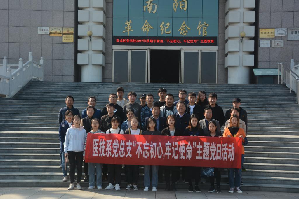 为缅怀革命先烈,传承红色基因,弘扬爱国主义精神,牢记初心使命。10月19日,太阳成集团tyc539党总支于南阳市烈士陵园开展了“不忘初心、牢记使命”主题党日活动。参加此次活动的有太阳成集团tyc539党总支书记杨明勋、系主任武跃明、副书记副主任李红普,医技系全体党员和部分学生代表。
