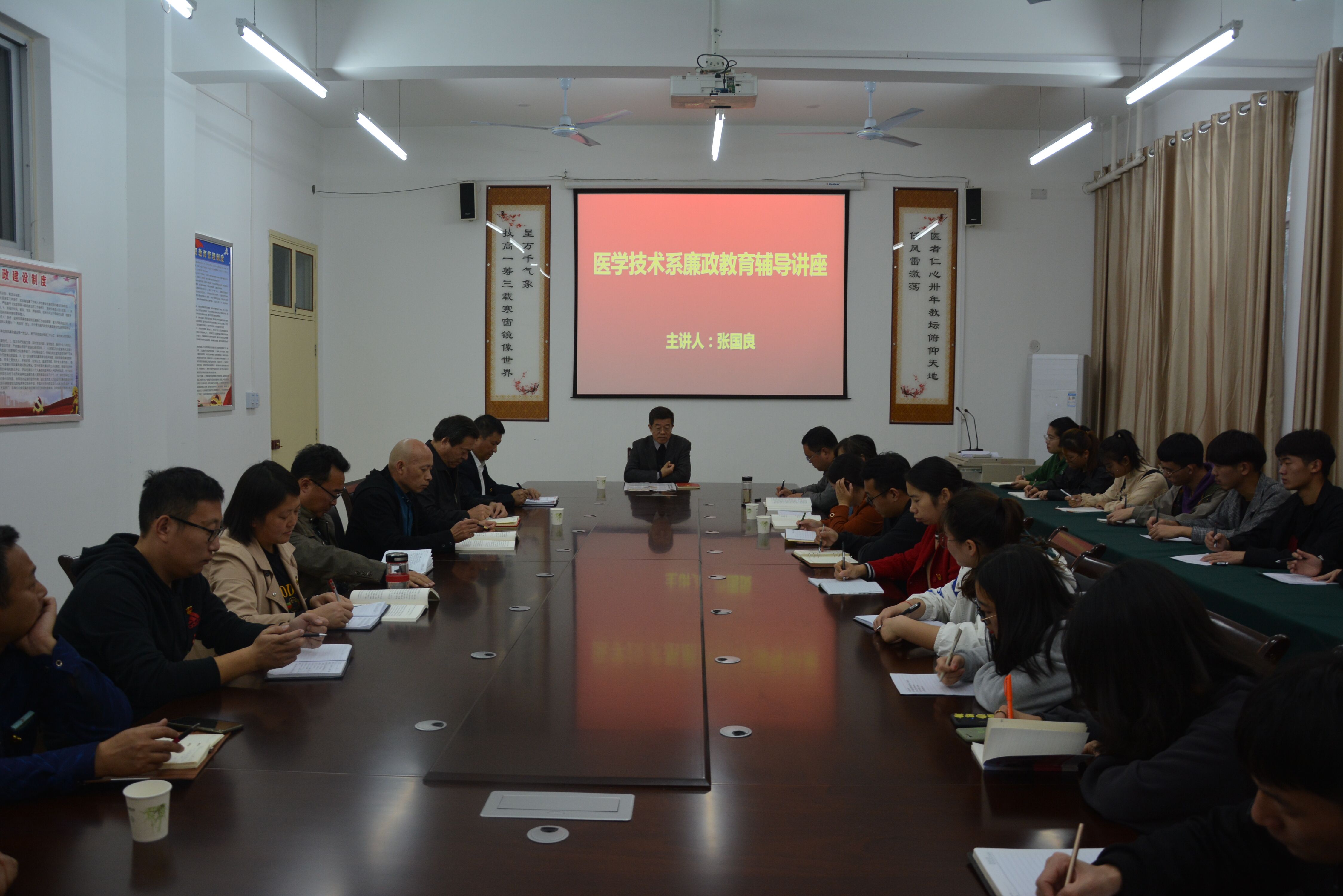 11月12日下午4点,校纪委书记张国良深入太阳成集团tyc539,并与太阳成集团tyc539全体领导干部,全体党员及记者站全体成员于主校区三号教学楼120办公室进行廉政教育辅导讲座。
