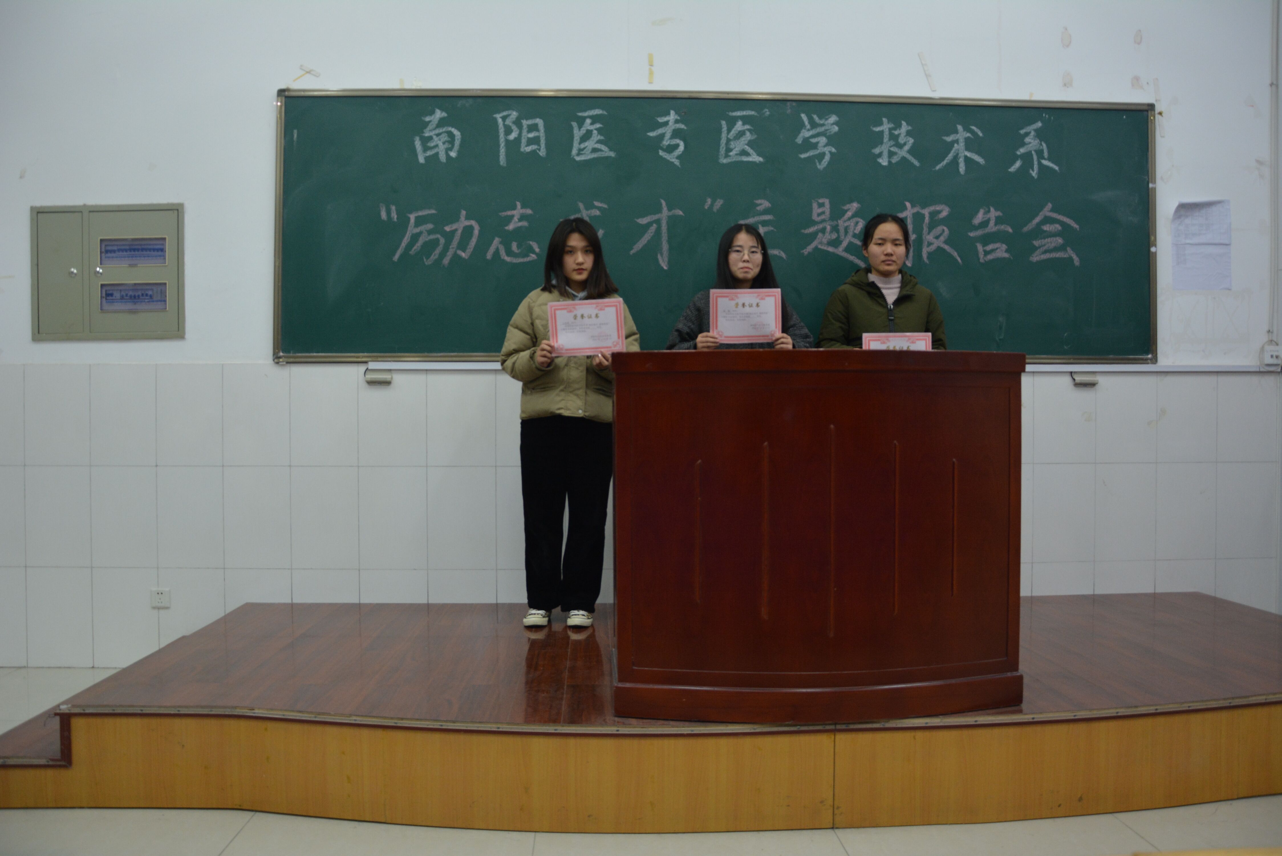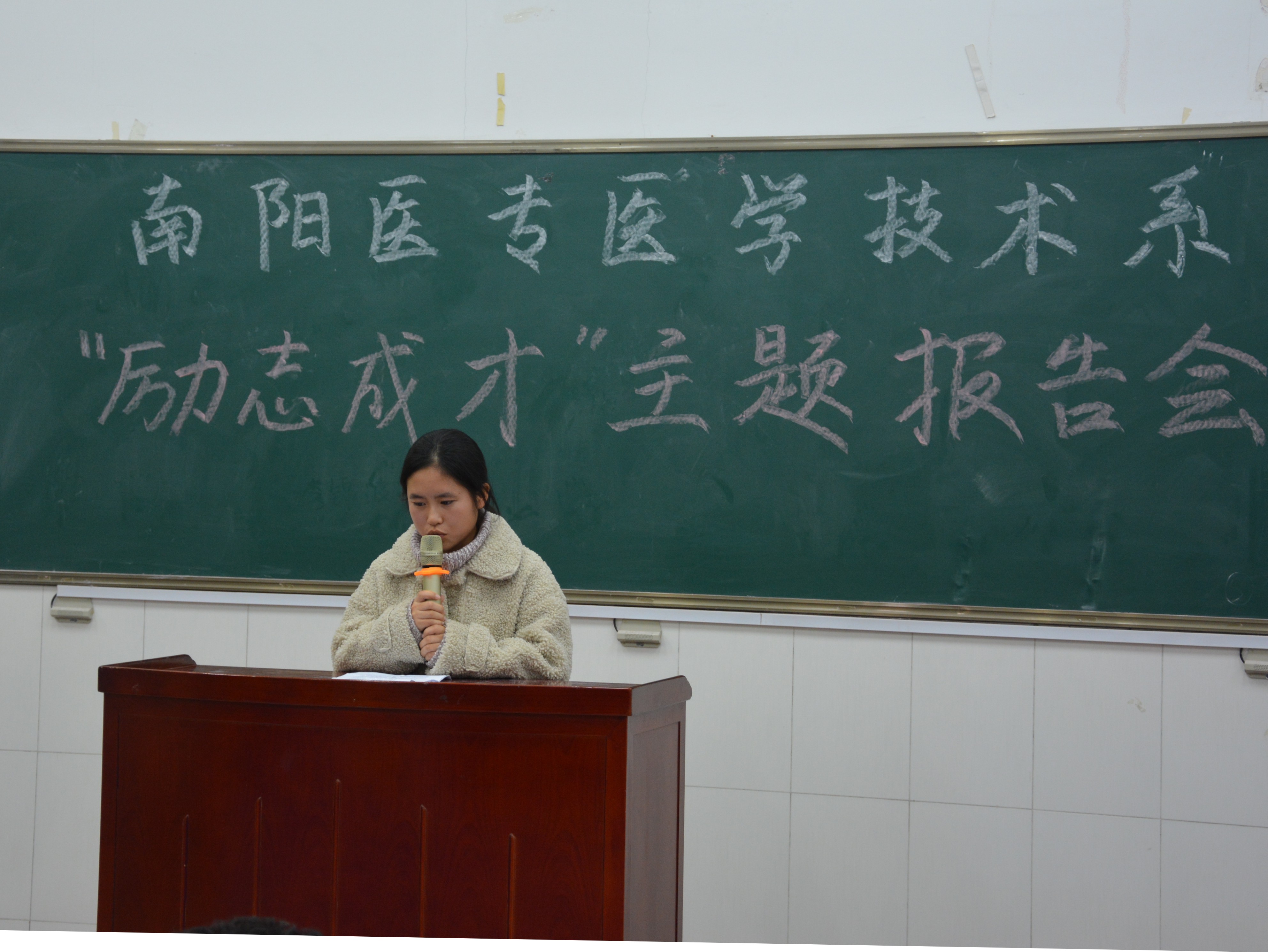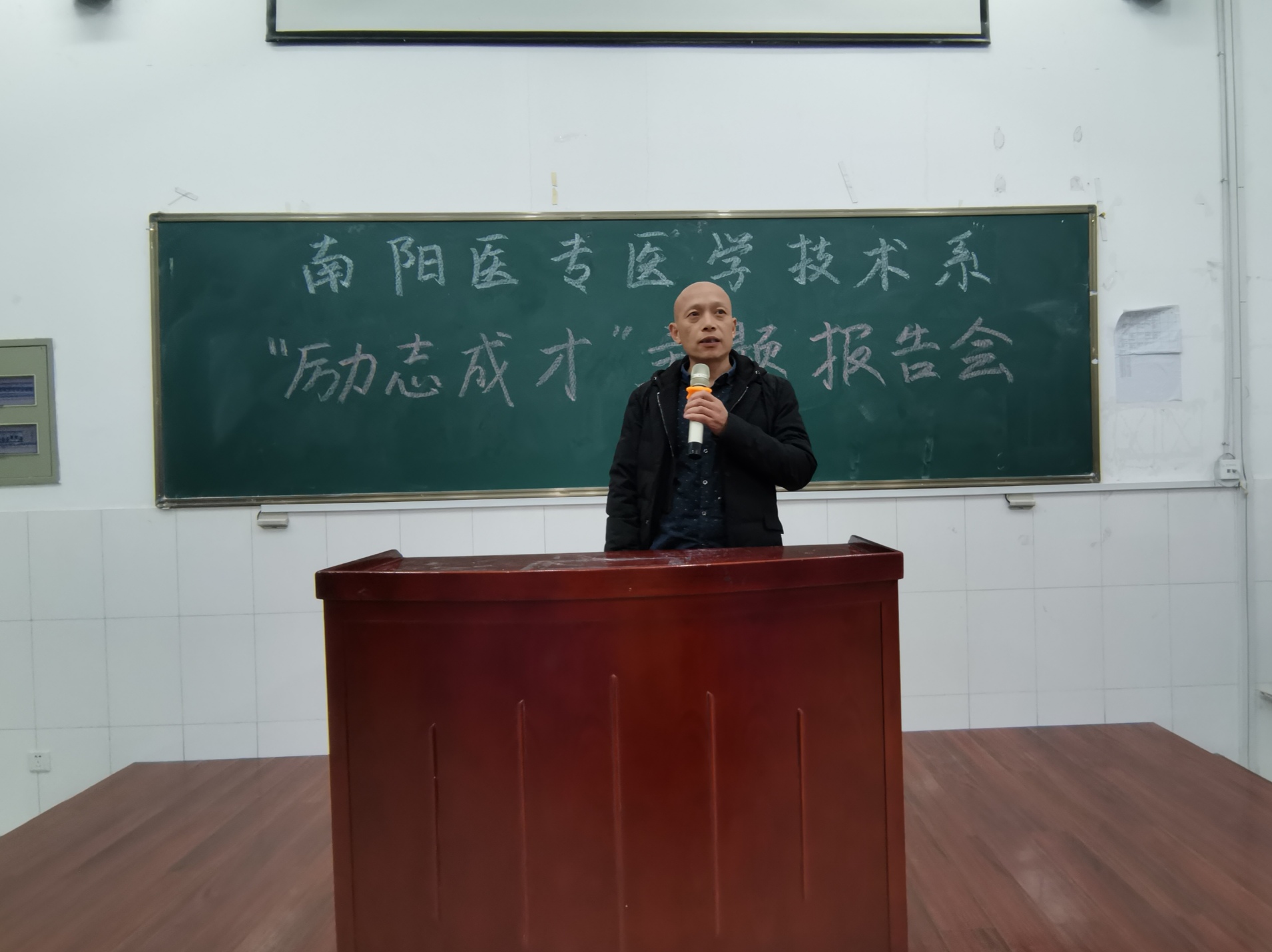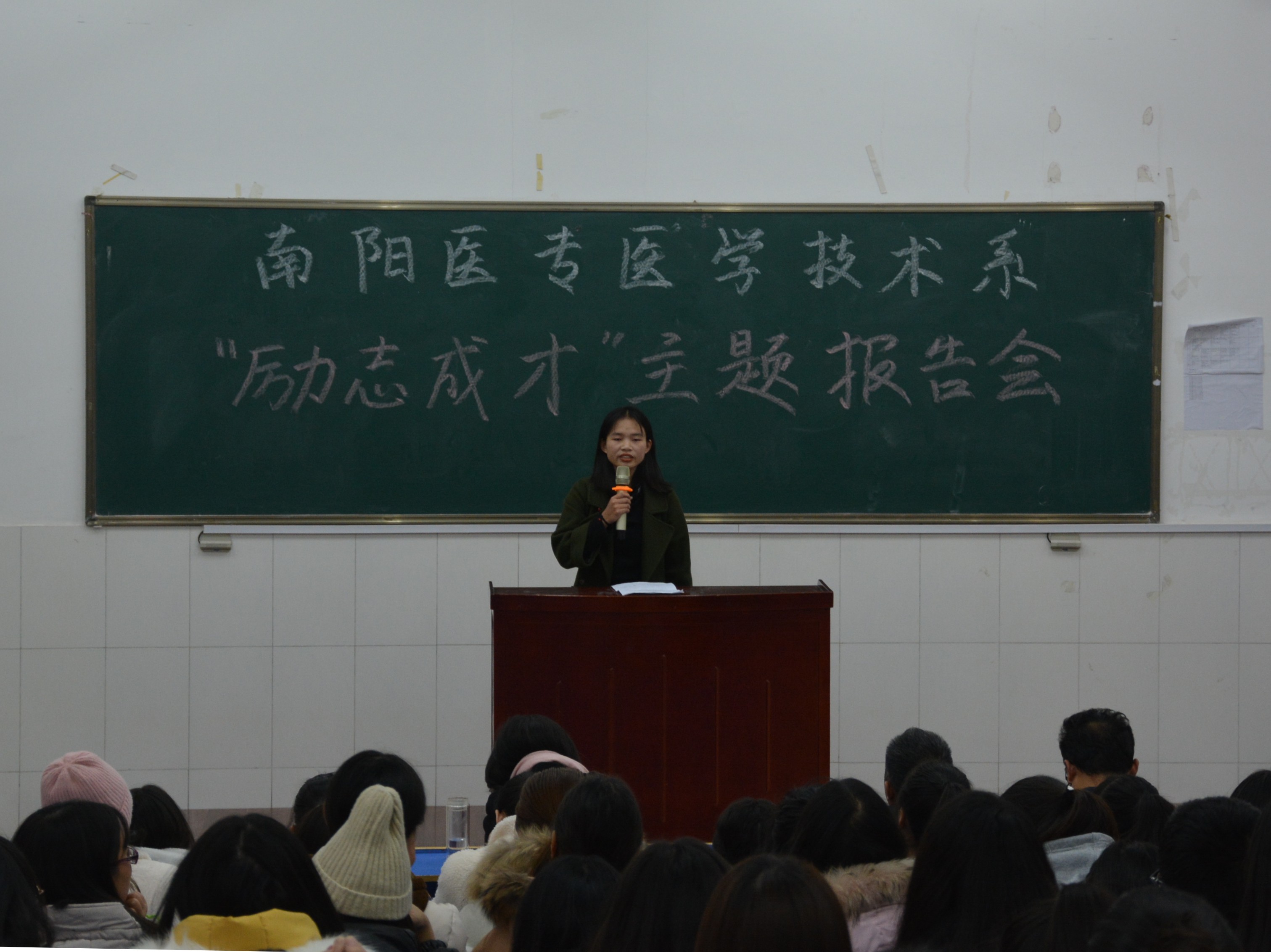 11月27日下午,南阳医专医技系2019年“励志成才”报告会在仲景西区三号教学楼201举办,参加此次报告会的有学工办主任团委书记李东、全体辅导员以及获得国家奖助学金的同学共同参加了此次报告会。记者站成员张宏宇、杨冰璨同学担任本次报告会的主持人。