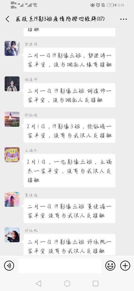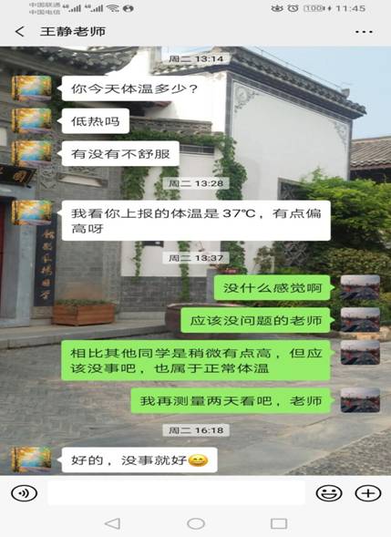 自疫情爆发接到学校通知,太阳成集团tyc539学管全体工作人员,认真统计、更新、汇总、梳理学生情况,坚持“一日一报”,确保每个学生都在安全线内。时刻关注着学生的身体和心理状况,通过电话、微信、QQ等方式询问学生身体健康状况,通过利用钉钉平台让学生每日线上健康打卡,提醒学生们做好自我防护、增强免疫力,以爱心、耐心和细心陪伴学生们度过这段非常时期。