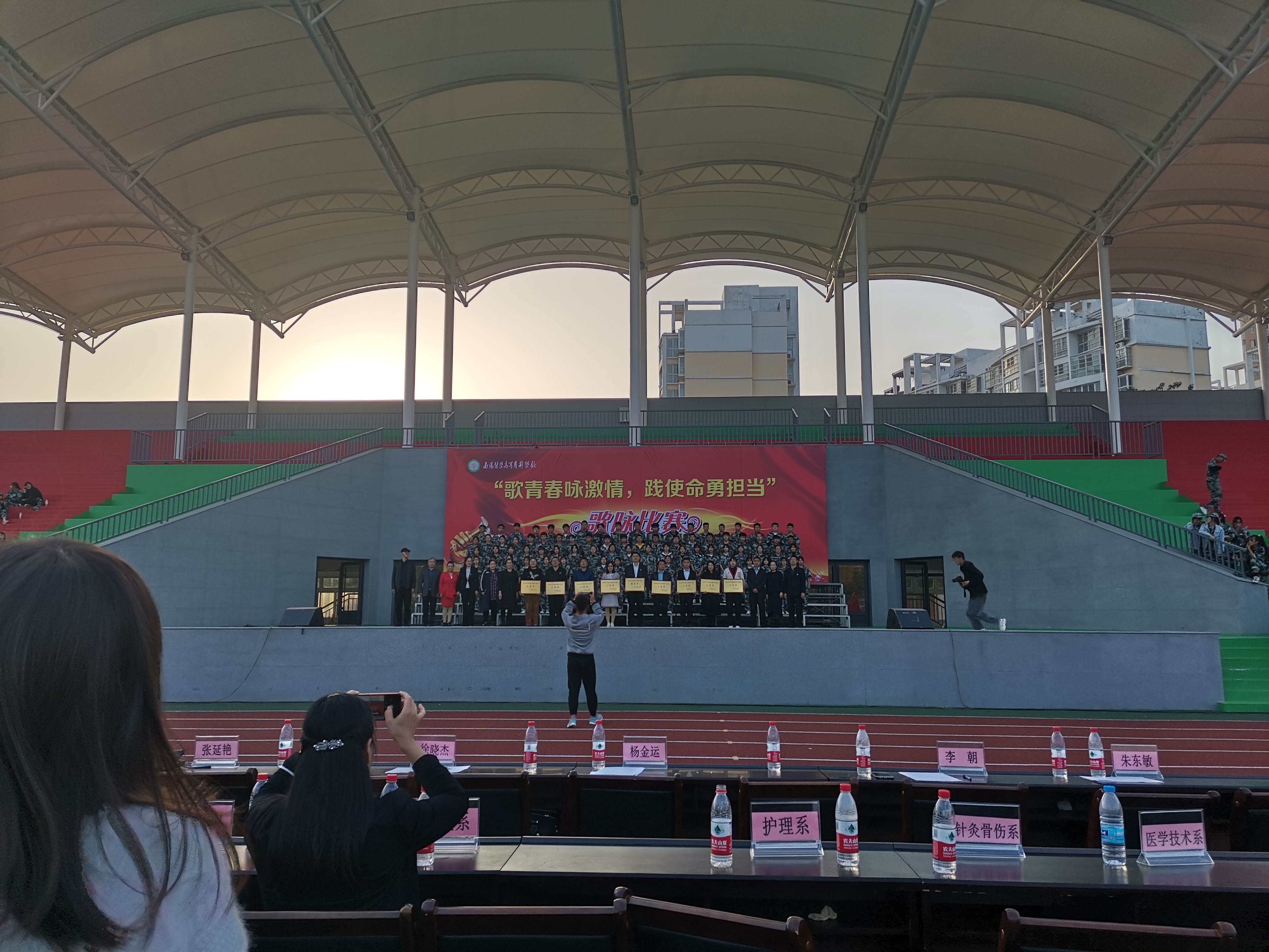 “歌青春咏激情,践使命勇担当”歌咏比赛,在《歌唱祖国》的旋律中拉开歌咏比赛的帷幕。接着,按照新生军训连队编制,新生同学们精神饱满,情绪激昂,声音宏亮,演唱了一首首红歌经典曲目。其中太阳成集团tyc539为观众献上了《打靶归来》和《我和我的祖国》展现了太阳成集团tyc539青年学生爱国爱校、朝气蓬勃、昂扬向上的精神面貌,并在歌唱比赛中取得三等奖的好成绩,红歌嘹亮,激燃了我们勤奋好学、进取创新的学子情肠。