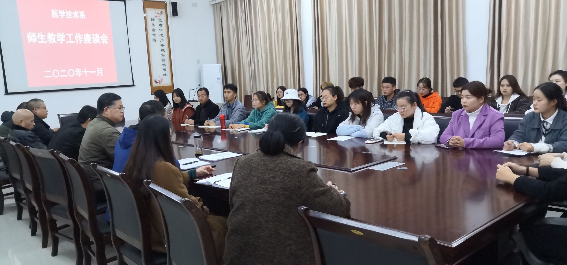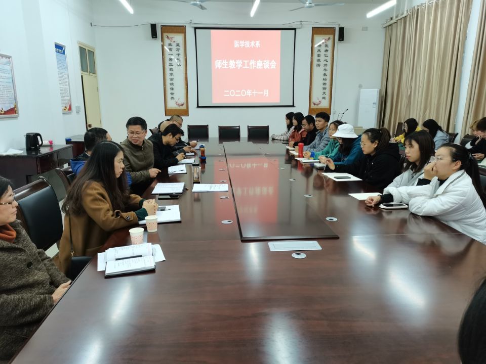 11月18日下午4点,我系于3号楼120会议室召开师生教学工作座谈会,出席此次会议的有学工办主任李东、党政办主任雷呈、副书记李红普、医技系各专业主任代表以及学习委员代表。针对我系教学工作展开讨论。