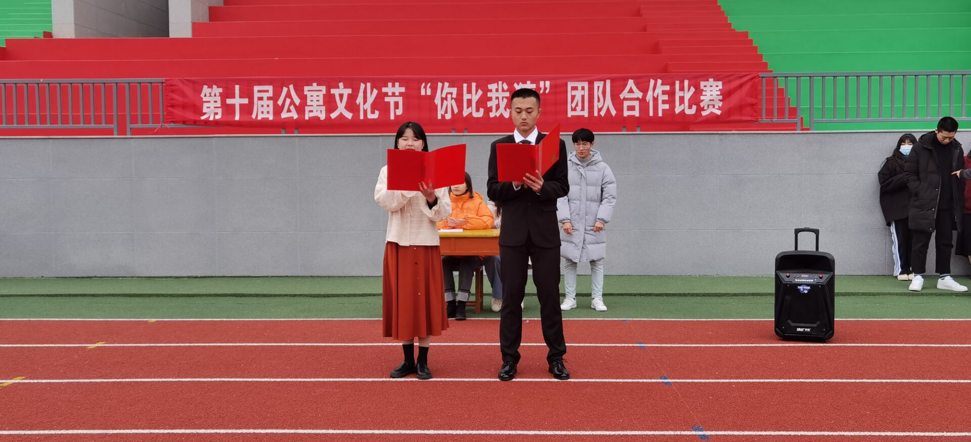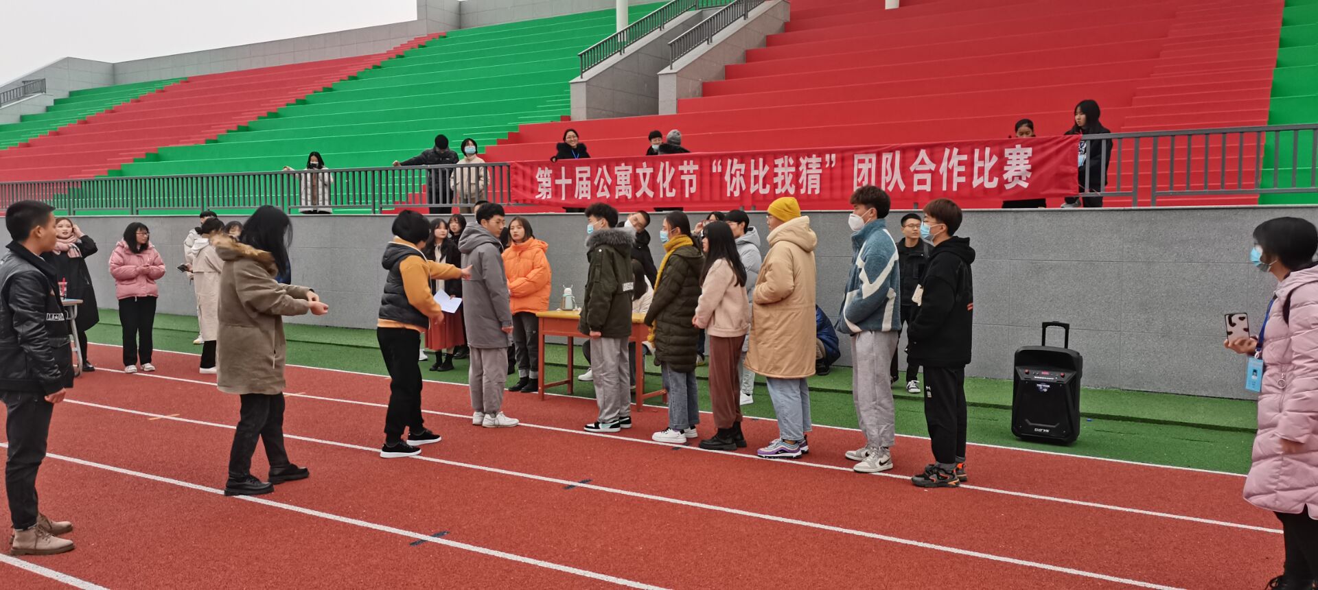 为加强大学生公寓精神文明建设,营造积极健康的学生公寓文化氛围,我校举办第十届公寓文化节,于12月2日下午3时在主校区操场举行“你比我猜”团队合作比赛。