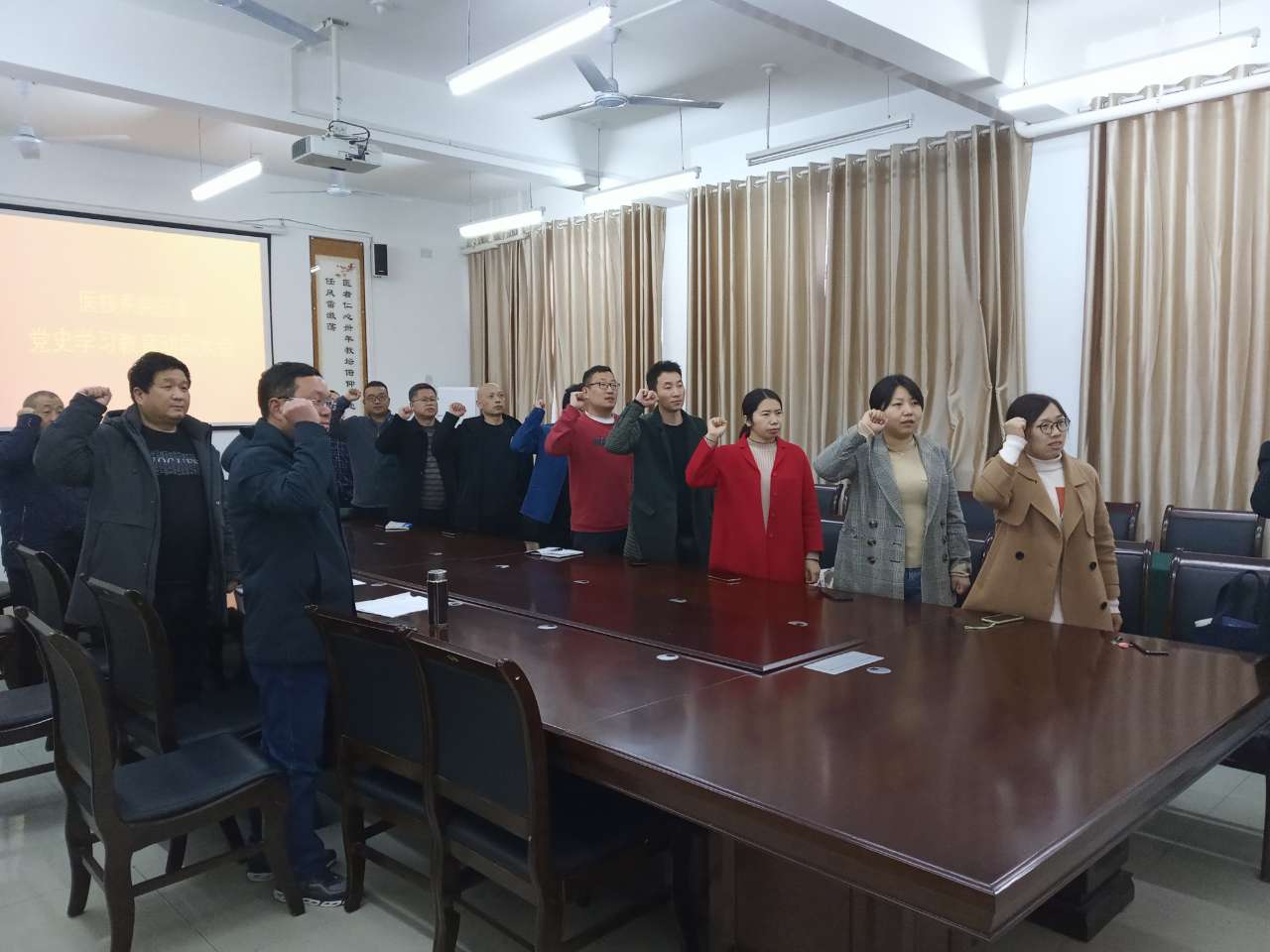 3月15日,医技系党总支召开党史学习教育动员大会,学习习近平总书记在党史学习教育动员大会上的重要讲话精神,传达贯彻校党委党史学习教育相关会议和文件精神,审议通过《医技系党总支关于开展党史学习教育的实施方案》,组织全体党员重温入党誓词。党总支书记杨明勋主持会议。