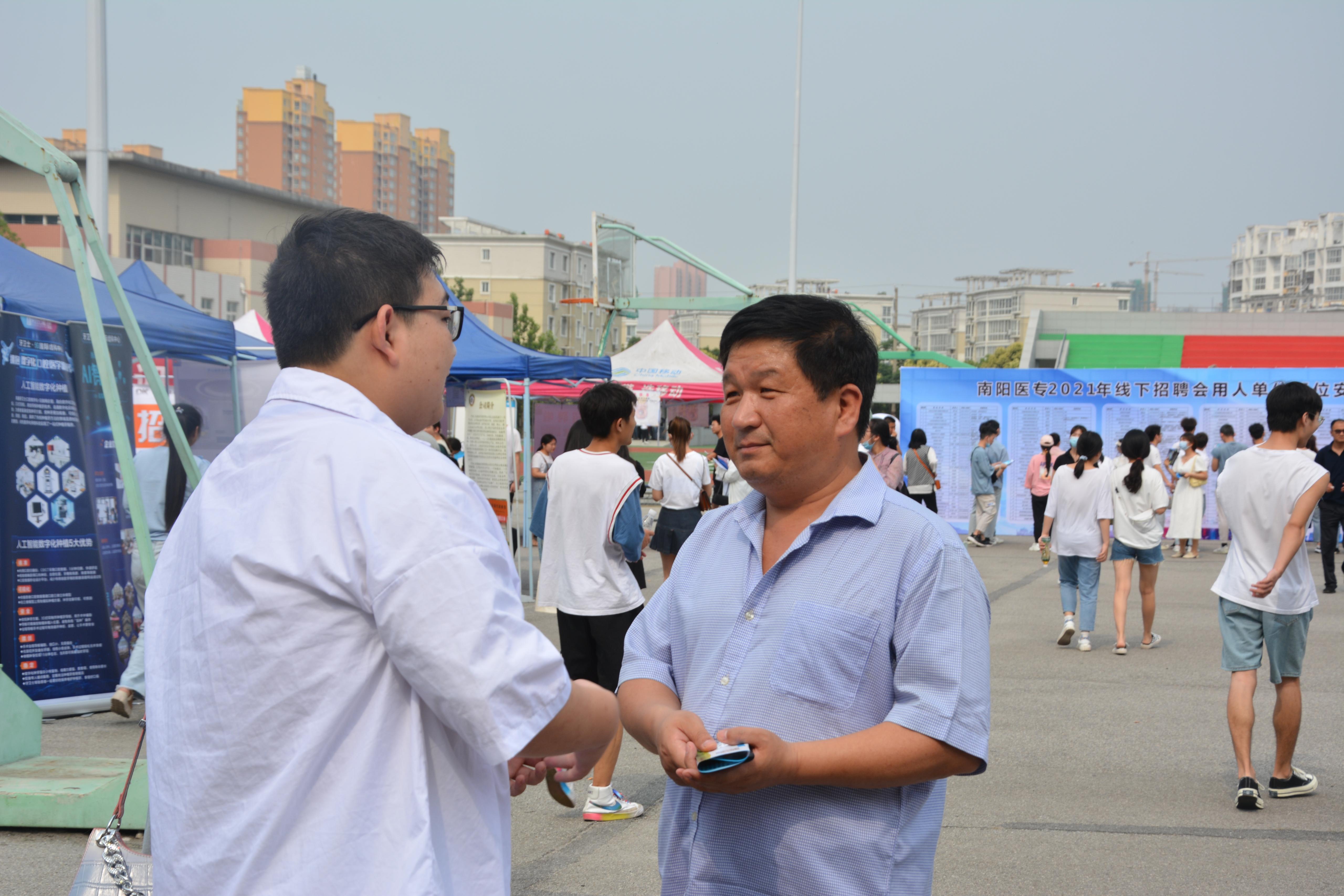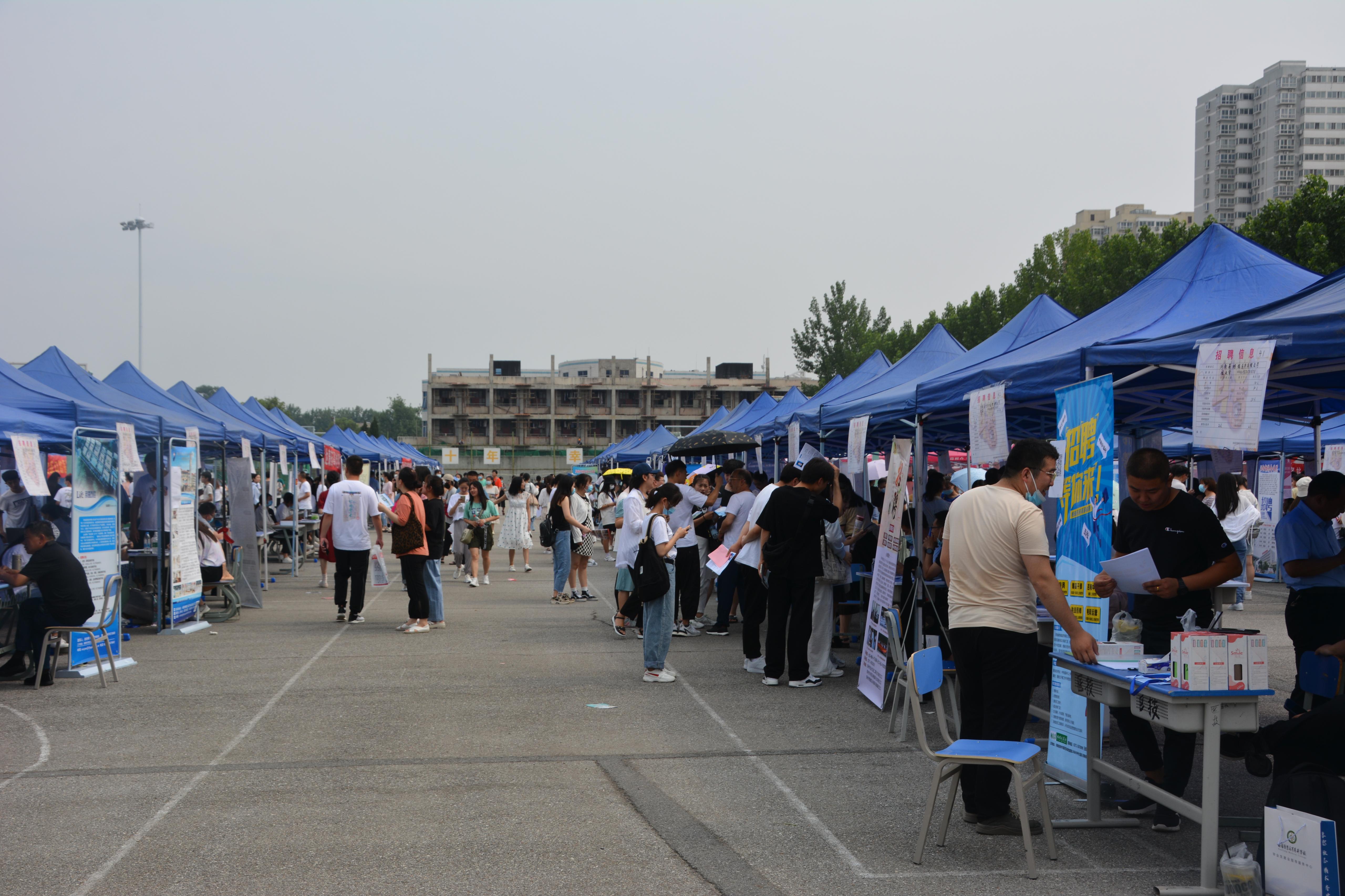 6月10日上午,我校于主校区新田径场与190余家企业用人单位合作举行线下招聘会。本次招聘会旨在通过校企合作的方式为广大应届毕业生提供就业岗位和服务平台,同时为招聘企业单位输入新鲜血液。莅临本次招聘会现场的有医技系党总支书记杨明勋、系学生会主管老师刘良、就业创业部主管老师刘玉博、18级各系(部、院)应届毕业生以及部分企业用人单位。