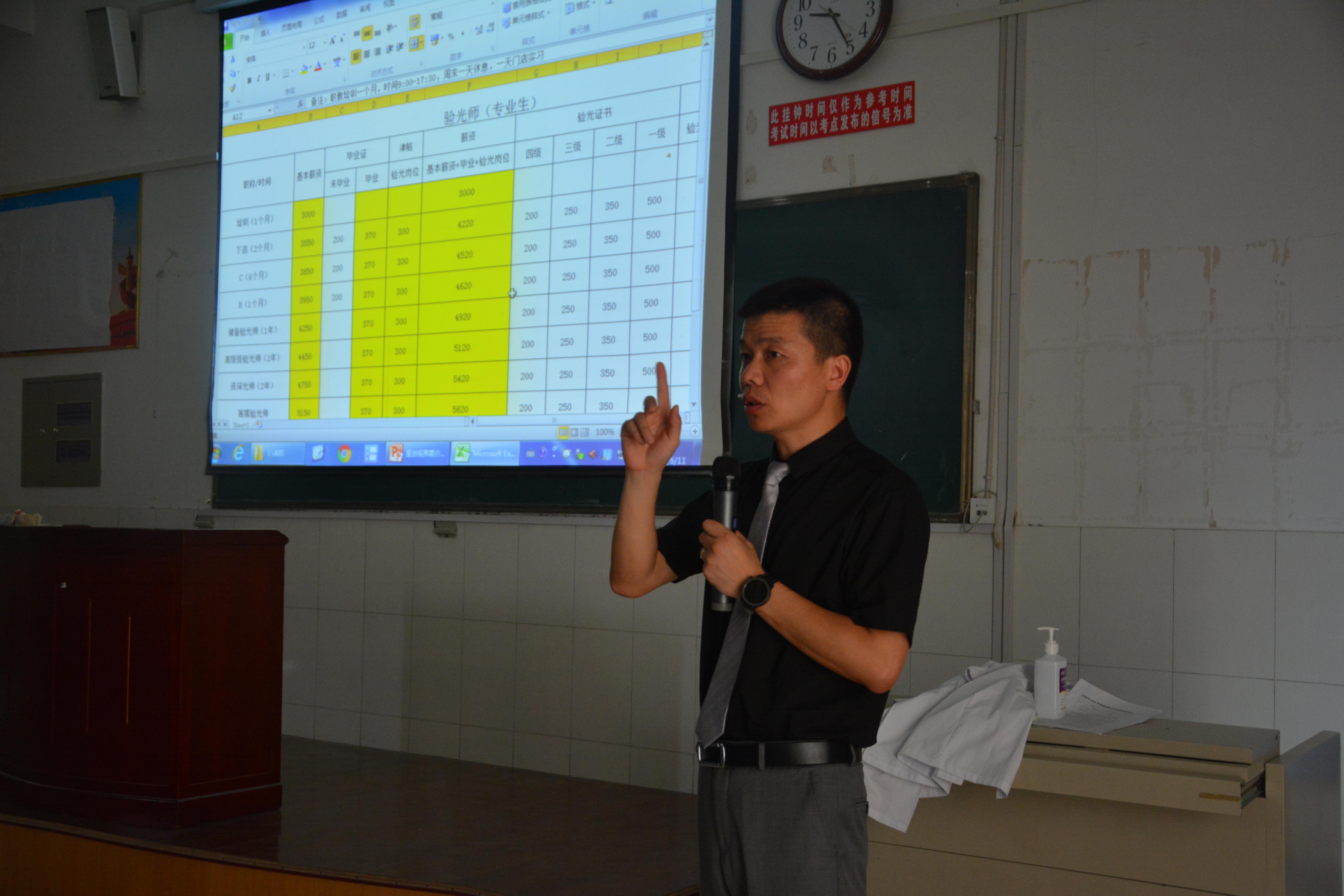 会议伊始,由星创视界、大华眼镜、晨明眼科、方城光明眼科医院、社旗县五官医院等企业单位来校讲解招聘,通过ppt讲解的形式对本企业的规模和前景进行了简要的介绍,同时又对企业的现有产业结构、组织构架、企业文化、人力资源政策和未来的职业规划进行了讲解。宣讲结束后,同学们对各企业的各项信息有了相应的了解,同学们积极提出疑问,各大企业单位也对同学们的疑问进行了详细的解答。杨明勋书记关切同学,亲自到场给同学们做就业指导和咨询工作,为他们答疑解惑。