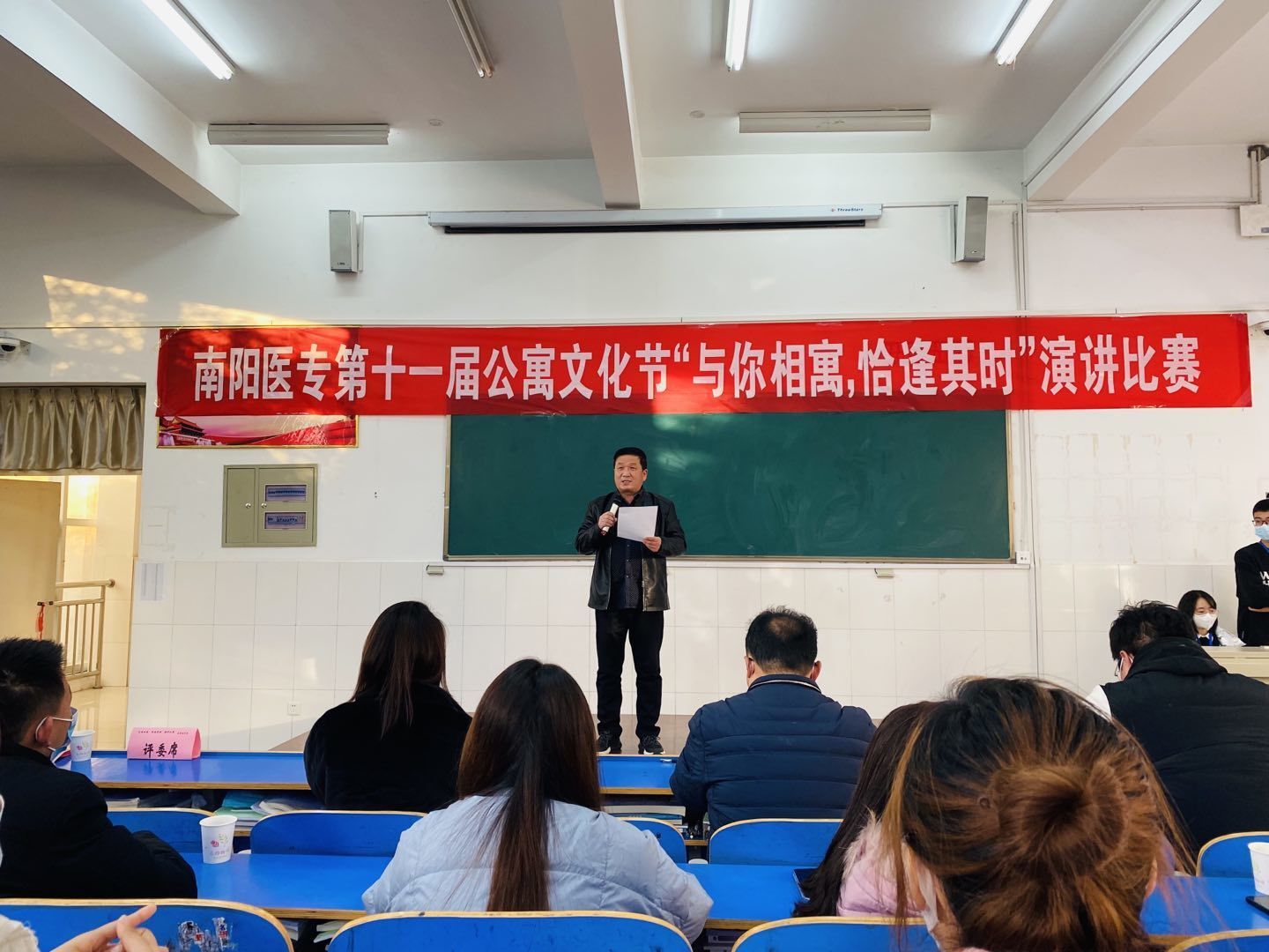 12月3日下午4时,由南阳医专主办,医技系承办的“与你相寓,恰逢其时”为主题的演讲比赛,于主校区三号教学楼201教室成功举办。比赛的评委组由各系老师代表组成,参加本次比赛的成员由我校中专部、临床系、药学系、针灸骨伤系、国教院、护理系、卫管系、中医系和医技系的部分同学组成。