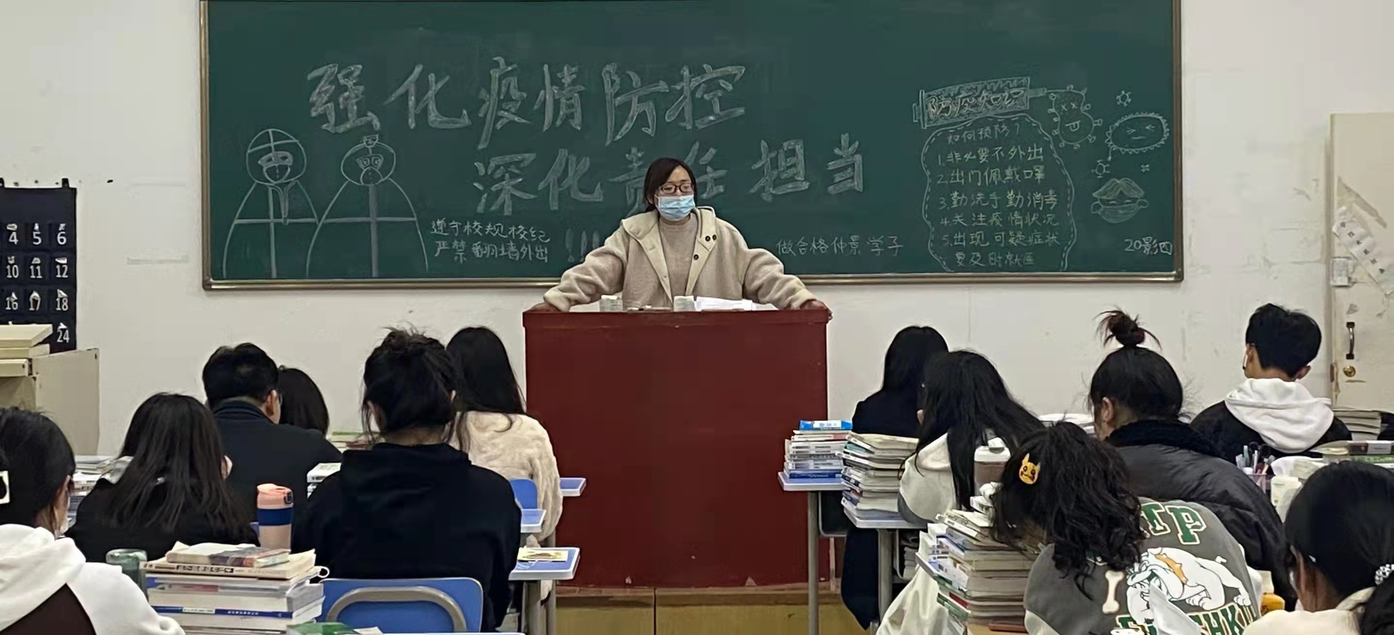 班会上,辅导员提出,新一轮疫情来势汹汹,作为一名医学生要坚定不移统一思想,听从学校指挥。班委负责人要积极落实学校部署以及各项防控举措。辅导员还指出,自学校转入封闭管理后,同学们应克服麻痹思想、侥幸心理,对防疫政策理解支持,特殊时期体现特殊精神、特殊担当。最后强调,面对疫情要提高警惕,加强自我防护,不接触校外餐饮,不私自出校违反校纪,疫情面前做好自己应尽的责任,不给学校和社会添麻烦。