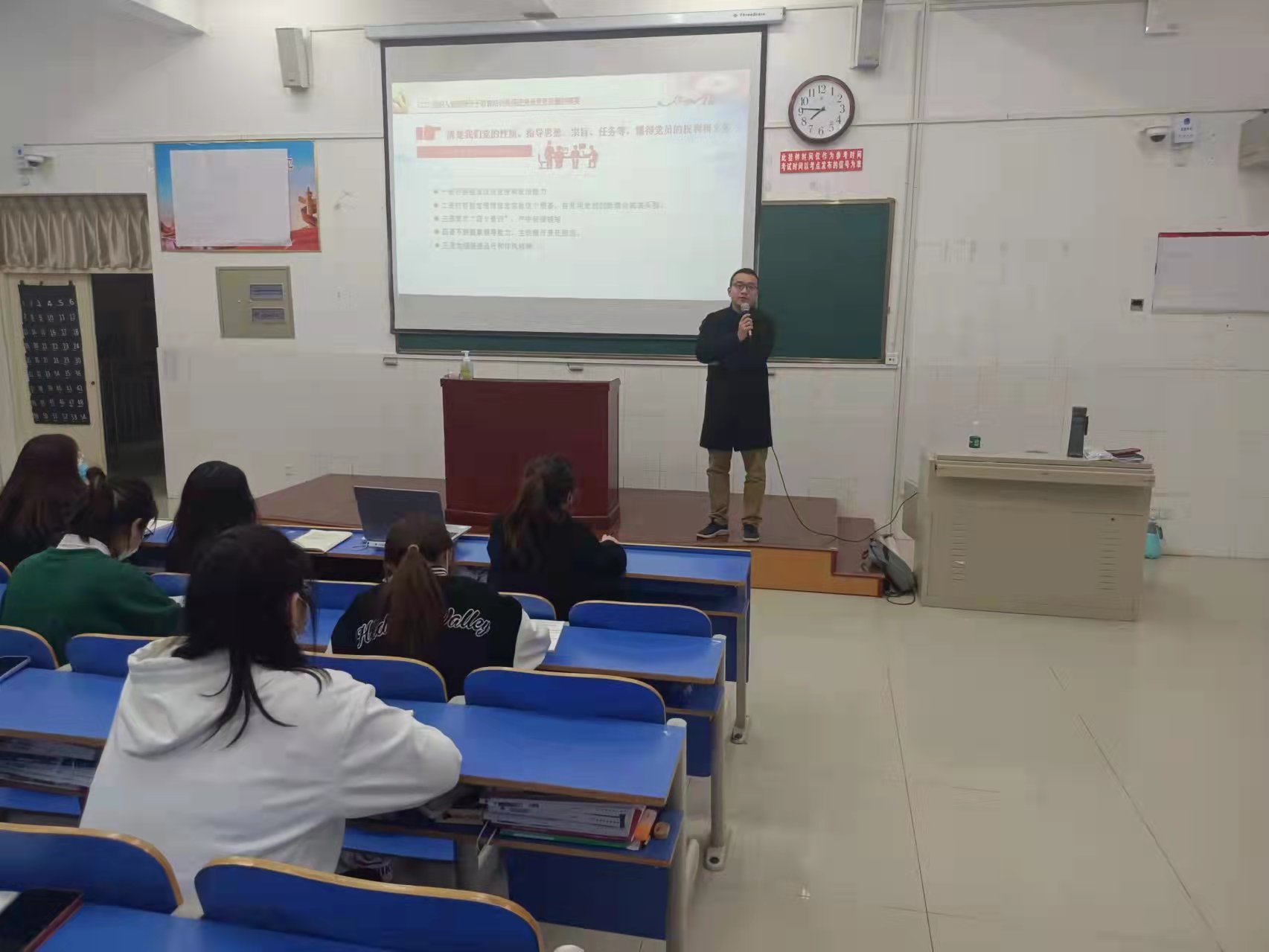 组织委员陈希源简述了关于《中国共产党章程》规定和发展党员工作《细则》要求,指出严格按照《中国共产党章程》规定对发展对象进行培训是发展党员必不可缺的必经步骤,强调要在思想上重视起来充分认识这次入党积极分子专题培训的重要意义。课上,组织委员陈希源就入党步骤、新时代党性修养的新要求、党性教育、党性修养、党性锻炼等做了详细解读,指出入党积极分子要有坚定的信仰、坚定的信念、坚定的信心。同时就“为什么入党”这一重大问题上陈希源老师和同学们进行了深刻交流,为同学们指明了前进的方向。