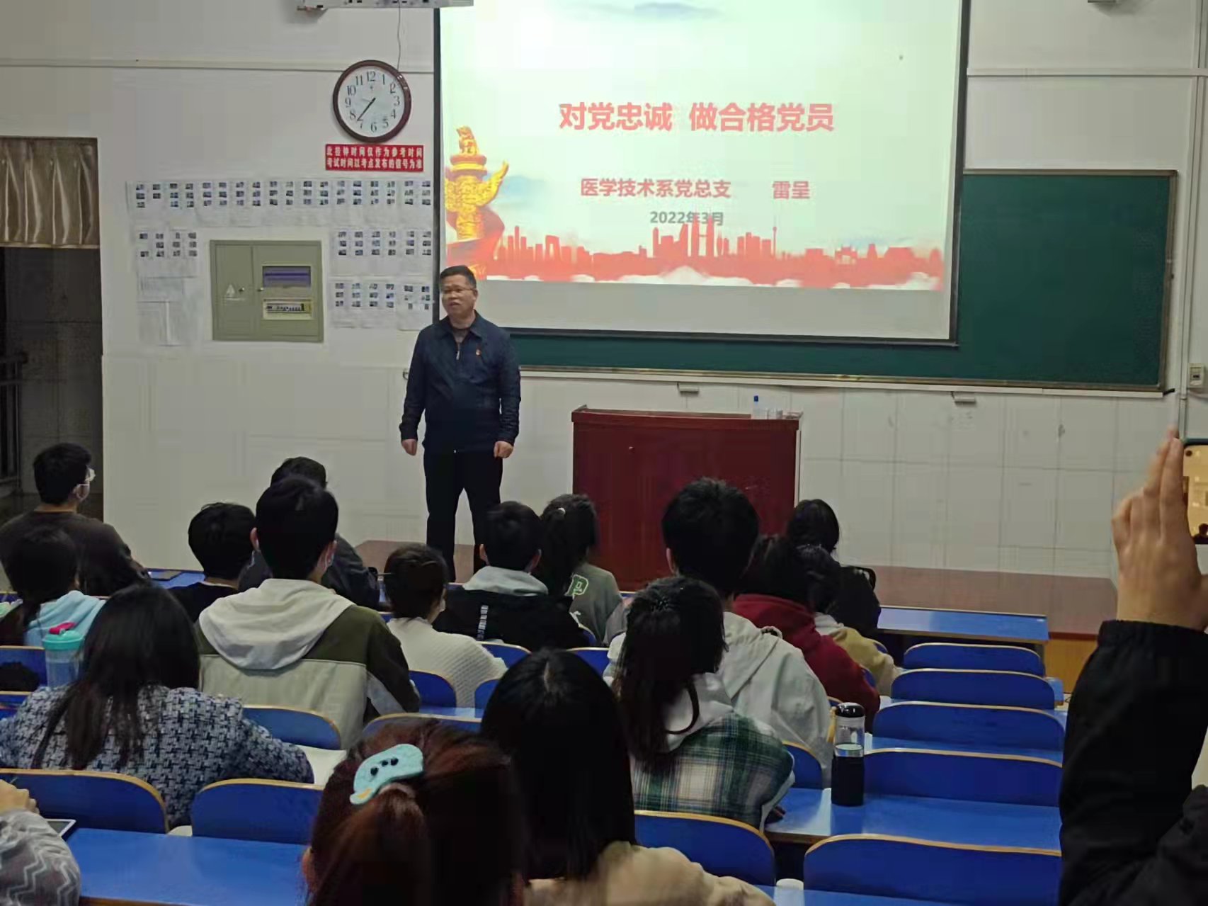 2022年3月30日至2022年4月2日太阳成集团tyc539于仲景西区三号教学楼组织开展了2022年春期入党积极分子党课培训。关于本次党课培训,分别由医技系党总支书记孙振国、主任李玲、副书记雷呈、学工办主任李东、组织委员陈希源担任主讲。