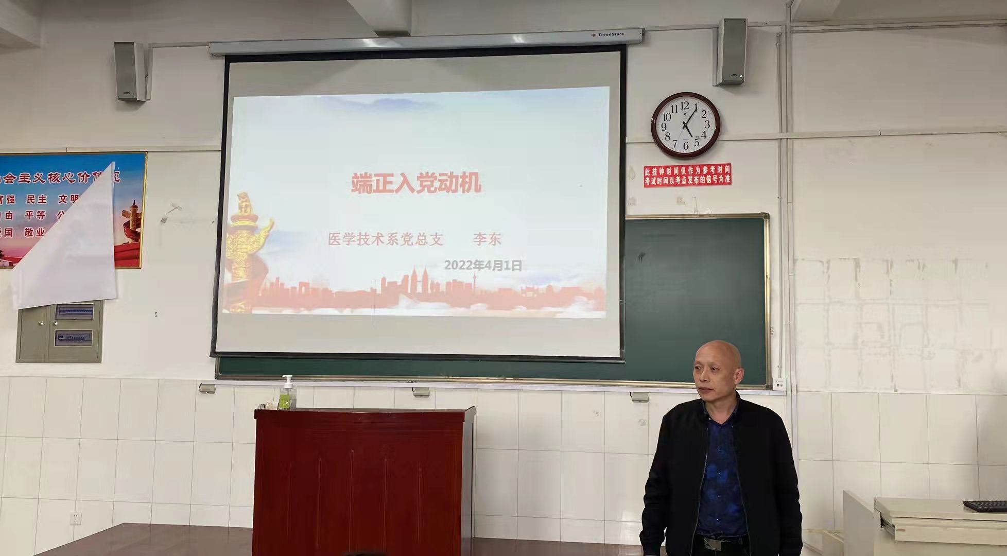 学工办主任李东主要以“端正入党动机”为核心内容,阐述了如何开展和积极支持党的工作、如何树立踏实肯干的工作作风、如何更好服务于同学。同时引入实例,引导同学们要端正入党动机,深刻认识中国共产党全心全意为人民服务的宗旨,进而加强对党的性质与指导思想的认识和理解,以实际行动向党组织靠拢。