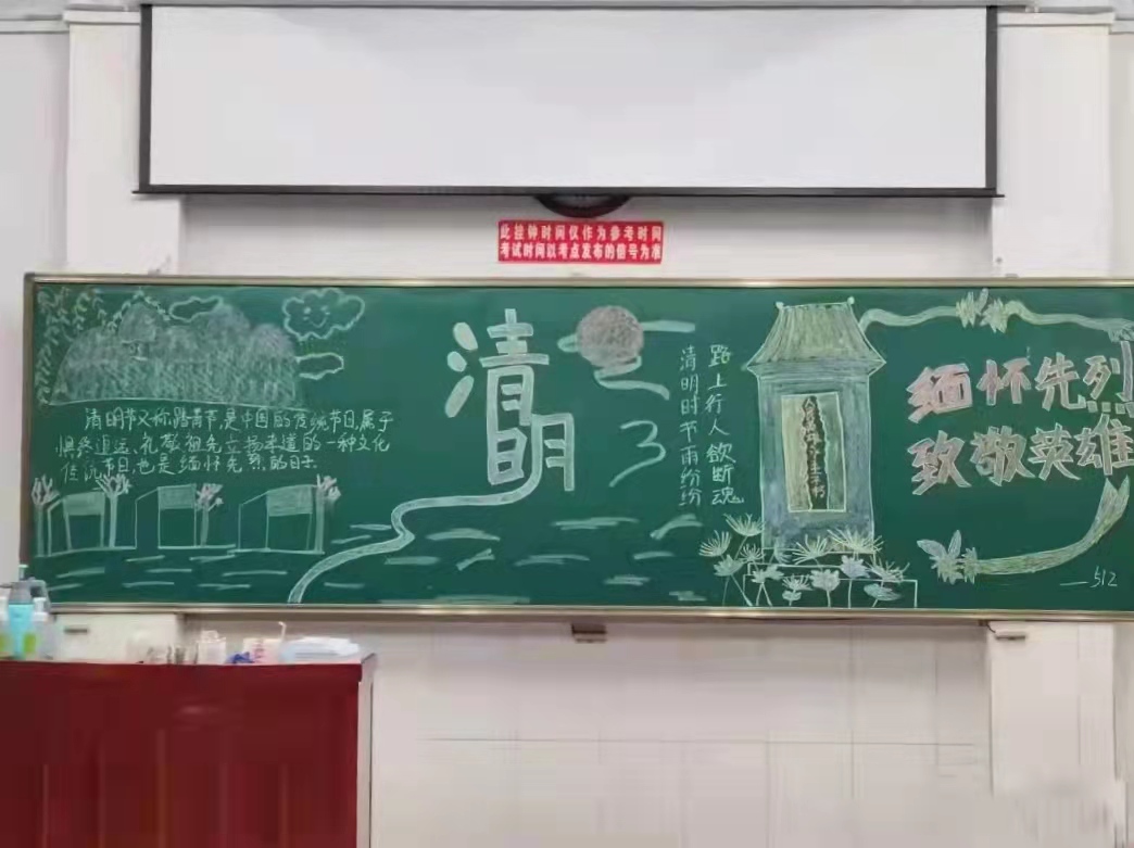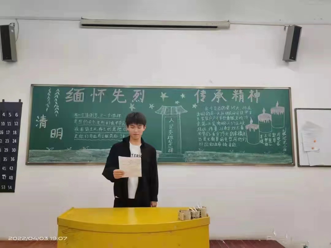 各班级通过绘制黑板报、讲述革命故事,进一步了解清明文化,宣传革命文化,红色文化和学习英烈精神。在“缅怀先烈”环节,各班主讲人讲述了革命先烈为民族独立、人民解放和社会主义现代化建设作出的突出贡献和巨大牺牲的英勇故事。赵一曼、林觉民、翟秋白、邱少云、夏明翰、方志敏……每一个都值得被铭记!正是无数英烈的前仆后继、英勇牺牲,才换来我们今天的幸福生活。清明时节,让我们穿越时空接过英烈们手中的信仰火炬,赓续红色血脉!一同感受先烈们不畏艰难万险、一心为民的赤胆红心,引导同学关注英烈、缅怀英烈、学习英烈、守护英烈,进一步传承和弘扬英烈精神,继承先烈遗志、不断凝聚爱国的精神力量。