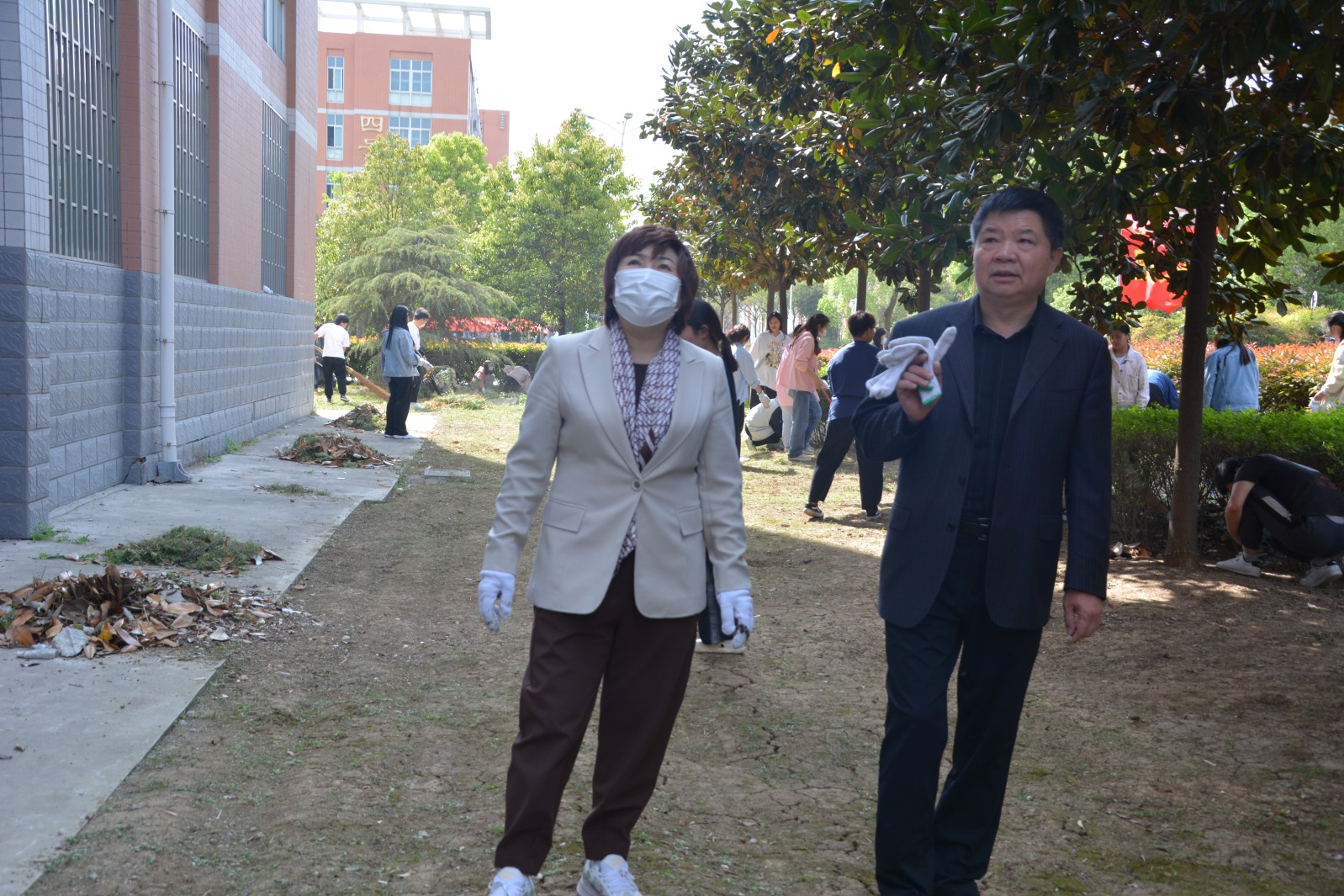 医技系卫生区域内到处是忙碌的身影,各班级分工明确、准备充分、迅速行动。刘金云书记戴好劳动手套,拿着扫帚、铁耙等工具,与老师、同学们一起,认真清理装运杂草、枯叶、石块等,带领大家对校园绿化带、主干道、墙角、教学楼、停车场周围等场所,特别是对卫生死角进行了认真清理打扫。劳动间歇刘书记与师生亲切交流座谈,指出在当前疫情形势下,全面加强严防联控、做好校园封闭管理的同时,要帮助广大师生解决好学习、生活、心理等方面的问题,切实做好思想引导、情感疏导、学习辅导、行为教导等。工作组各位成员都深入联系班级,以实际行动倡导同学们共建整洁文明校园,共同打好新冠肺炎疫情防控人民战争。经过大家2个多小时的共同努力,卫生环境干净整洁,校园面貌焕然一新。
