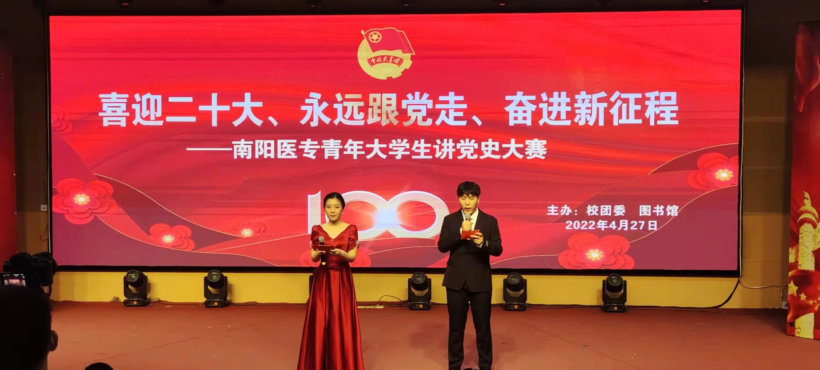 为引领学生听党话、跟党走、奋斗新征程,喜迎党的二十大胜利召开。4月27日下午,由共青团南阳医专委员会和图书馆联合举办的青年大学生讲党史大赛在仲景东区学术报告厅隆重举行。校党委副书记逵应坤,校团委书记徐晓杰以及各系(部、院)团总支书记出席本次比赛。此外,宣传部副部长陈铁良,学生处副处长闫珂,公教部副主任夏曼,图书馆副馆长孟玫,公共艺术教育中心艺术教研室主任张艳担任此次比赛评委老师。