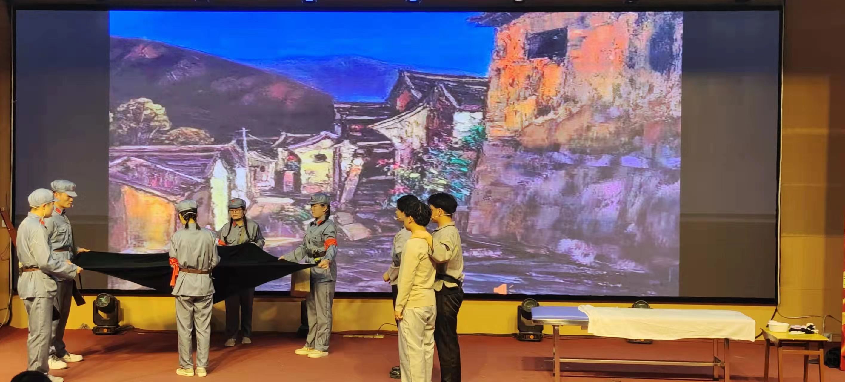 校党委副书记逵应坤上台致开场辞,他指出在党的二十大召开之际,中国共青团成立一百周年这一重要时间节点上,青年学生应回首中国共产党从建立到发展壮大的伟大历程,深入学习党史,走进党、了解党,成为红色基因的传承者。比赛以党的发展历程为主体,讲述一个又一个故事,将五四运动的爱国精神与戏剧艺术的表现形式相结合,将“五四精神”通过话剧展现出来,给观众带来一场独特的视听盛宴,展现了青年的意气风发与坚定不移,传承了先辈的革命精神,表达了新时代青年的崇高信念和新时代担当。