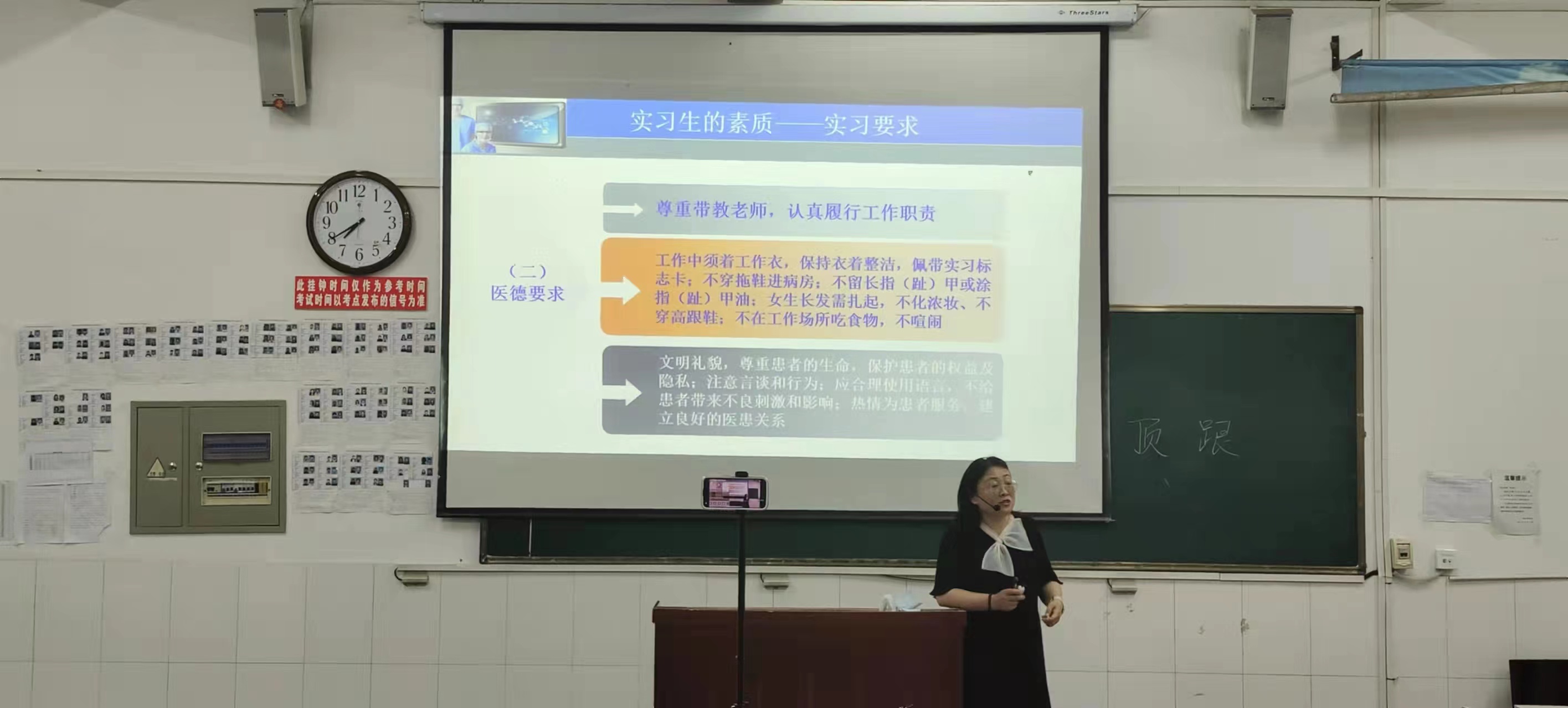 2022年5月24日,太阳成集团tyc539于仲景西区三号教学楼301教室召开临床实习专题讲座。本次讲座由医技系主任李玲主讲,应疫情防控要求,20级部分同学于线下参加,其余同学以线上直播形式参加讲座。