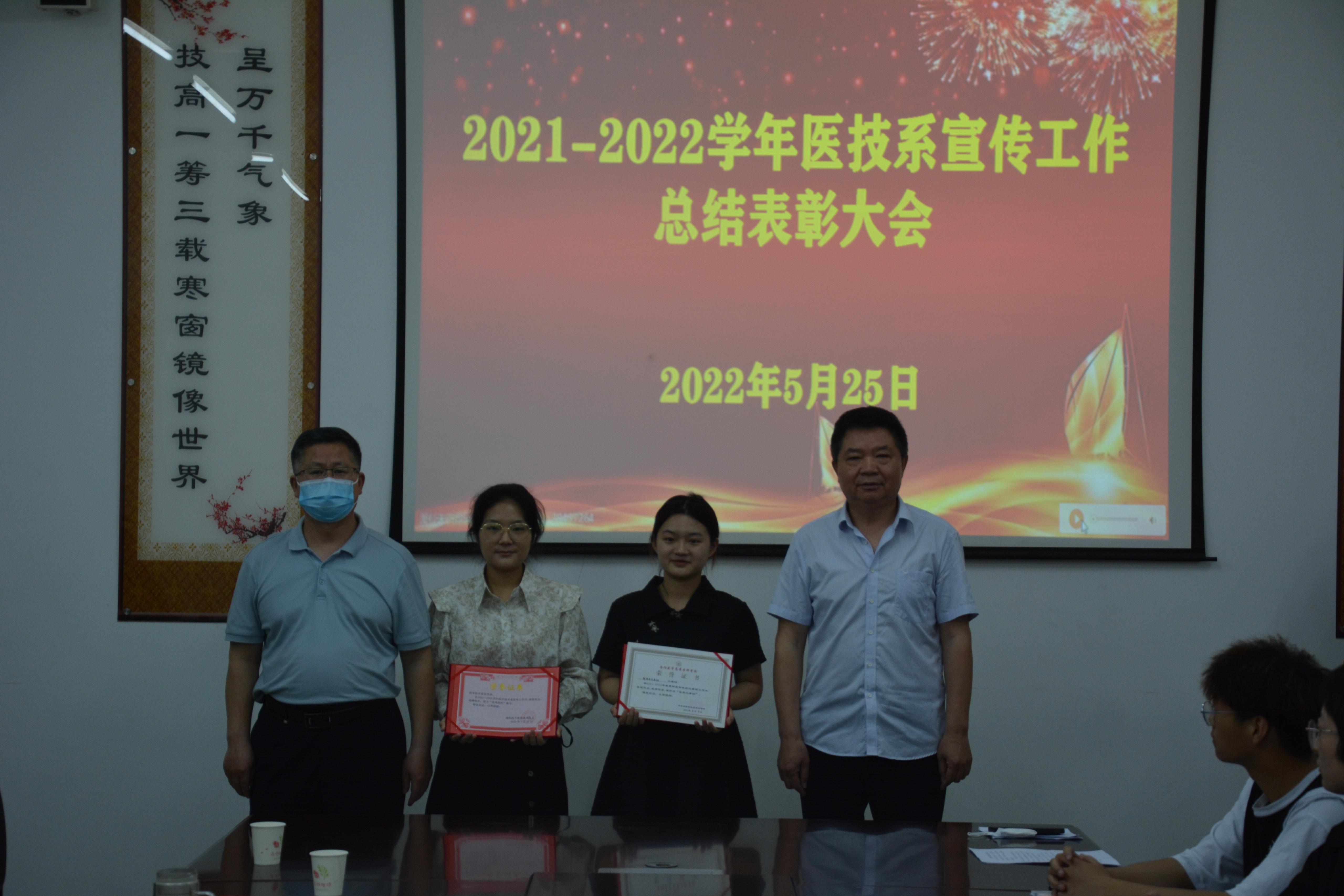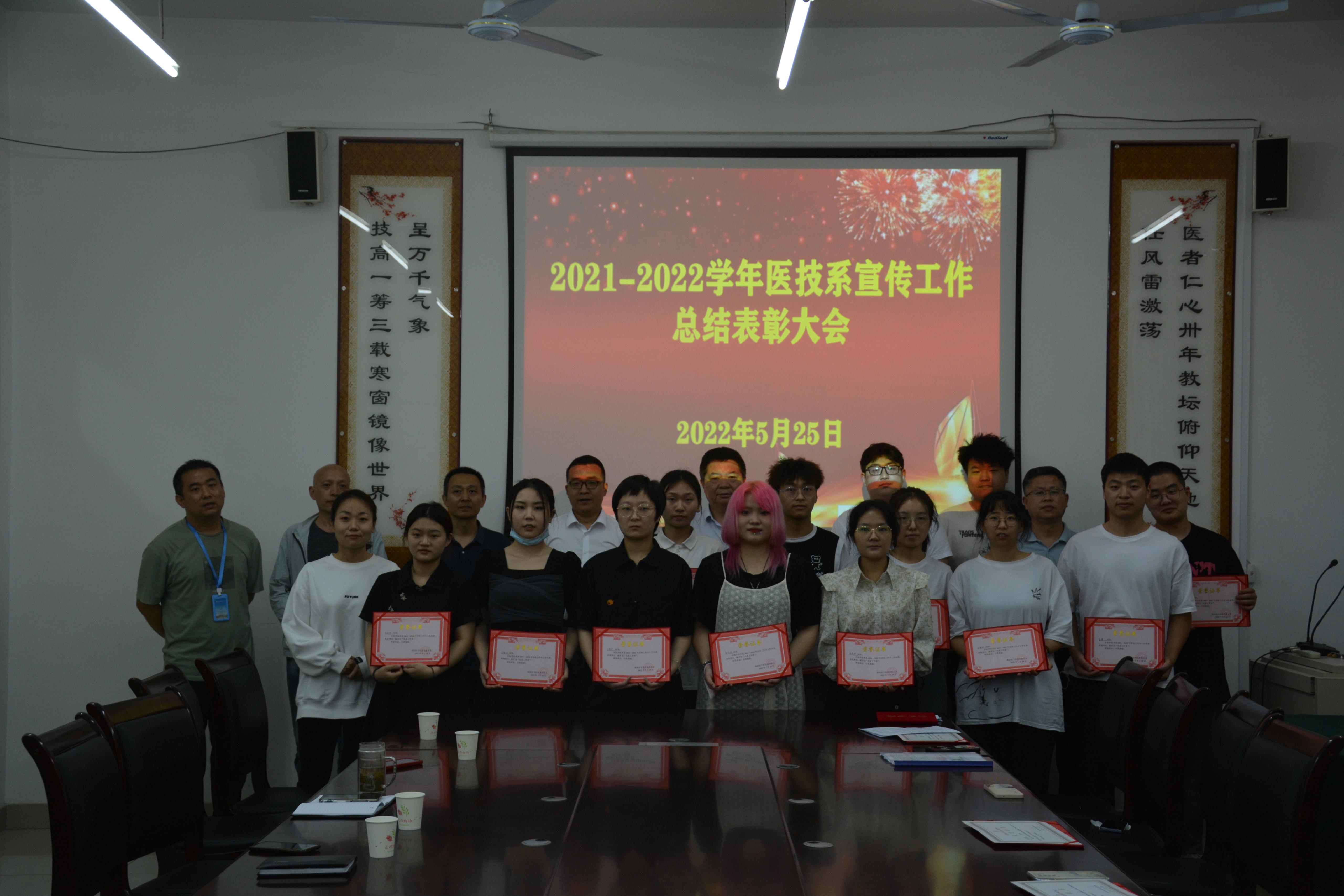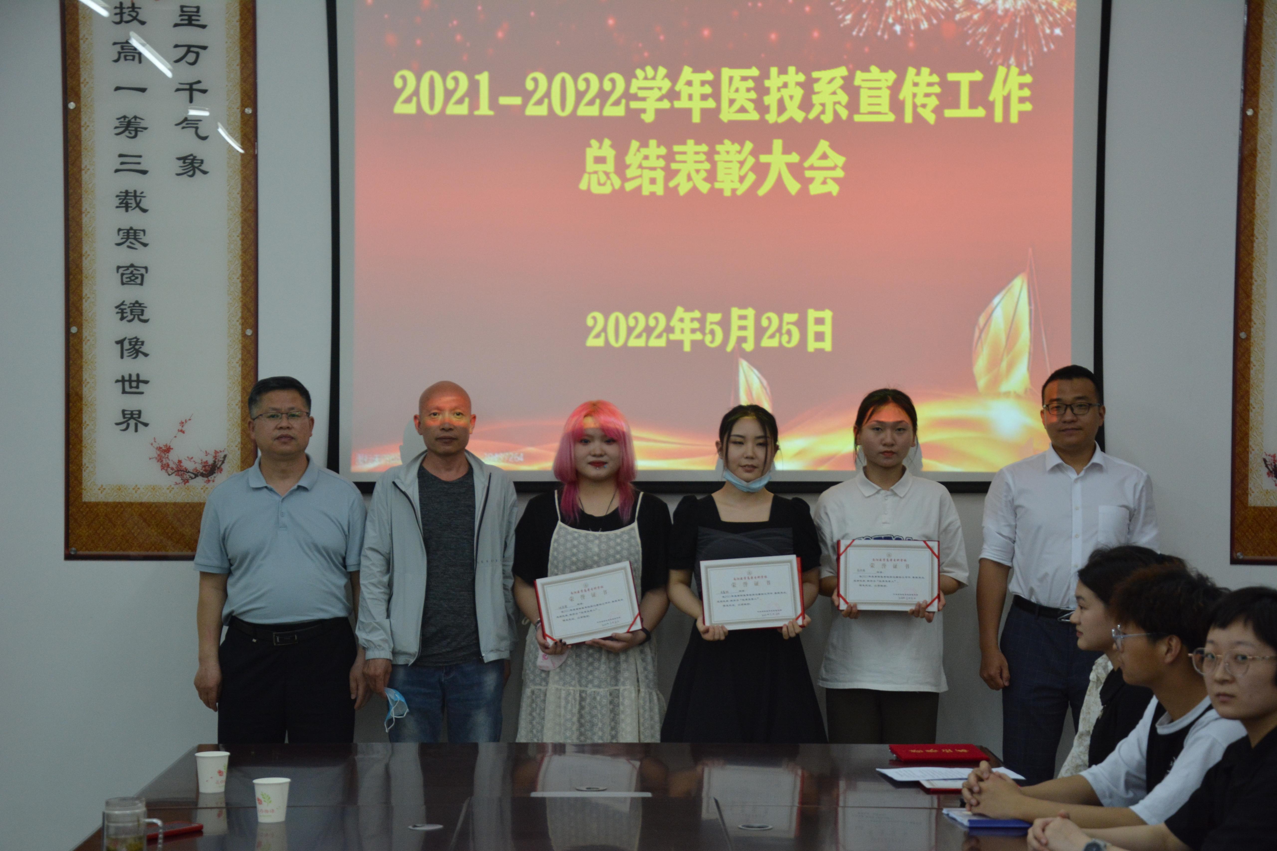 5月25日,医技系召开2021-2022学年宣传工作表彰大会,医技系党总支书记孙振国、副书记雷呈、相关人员、辅导员和学生代表参加会议。