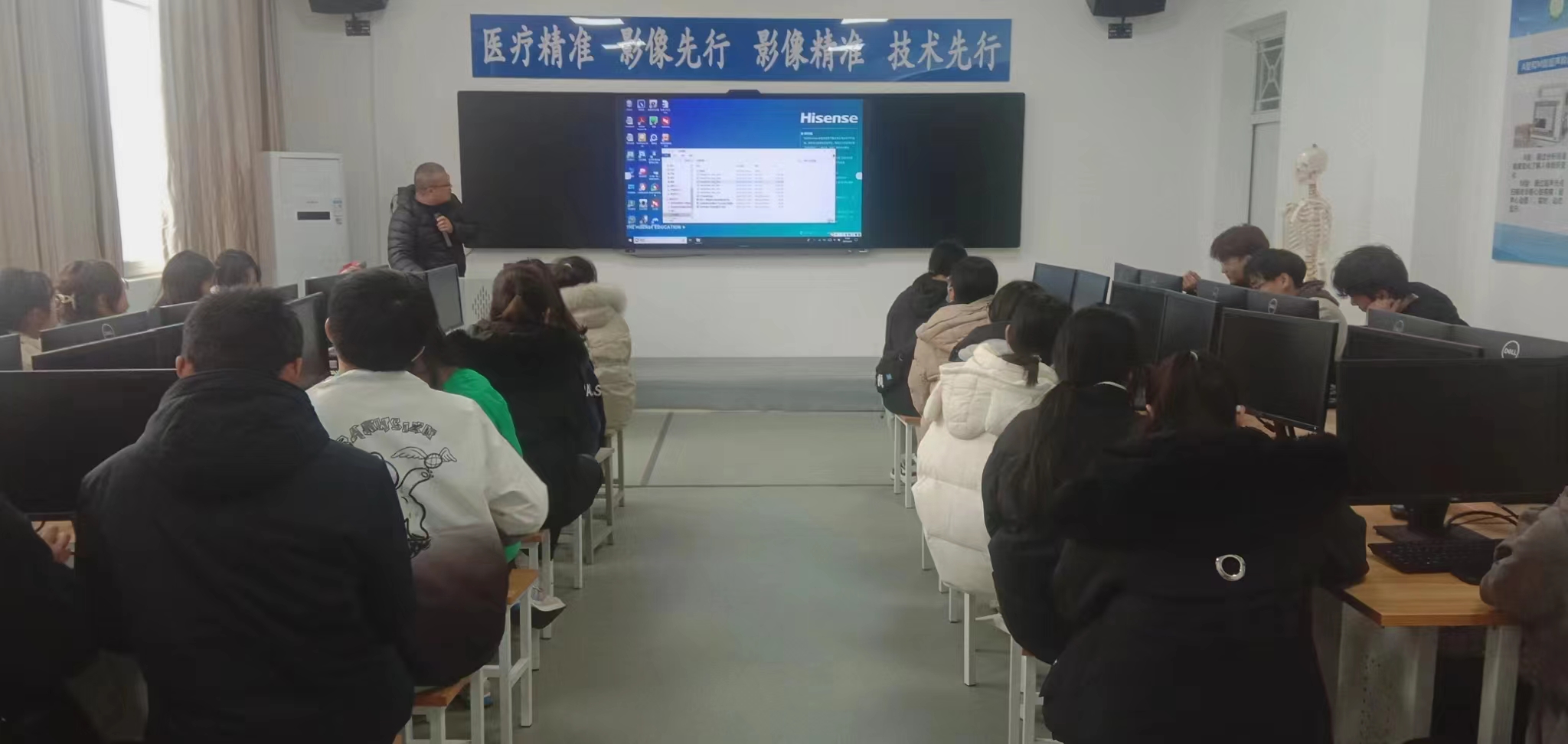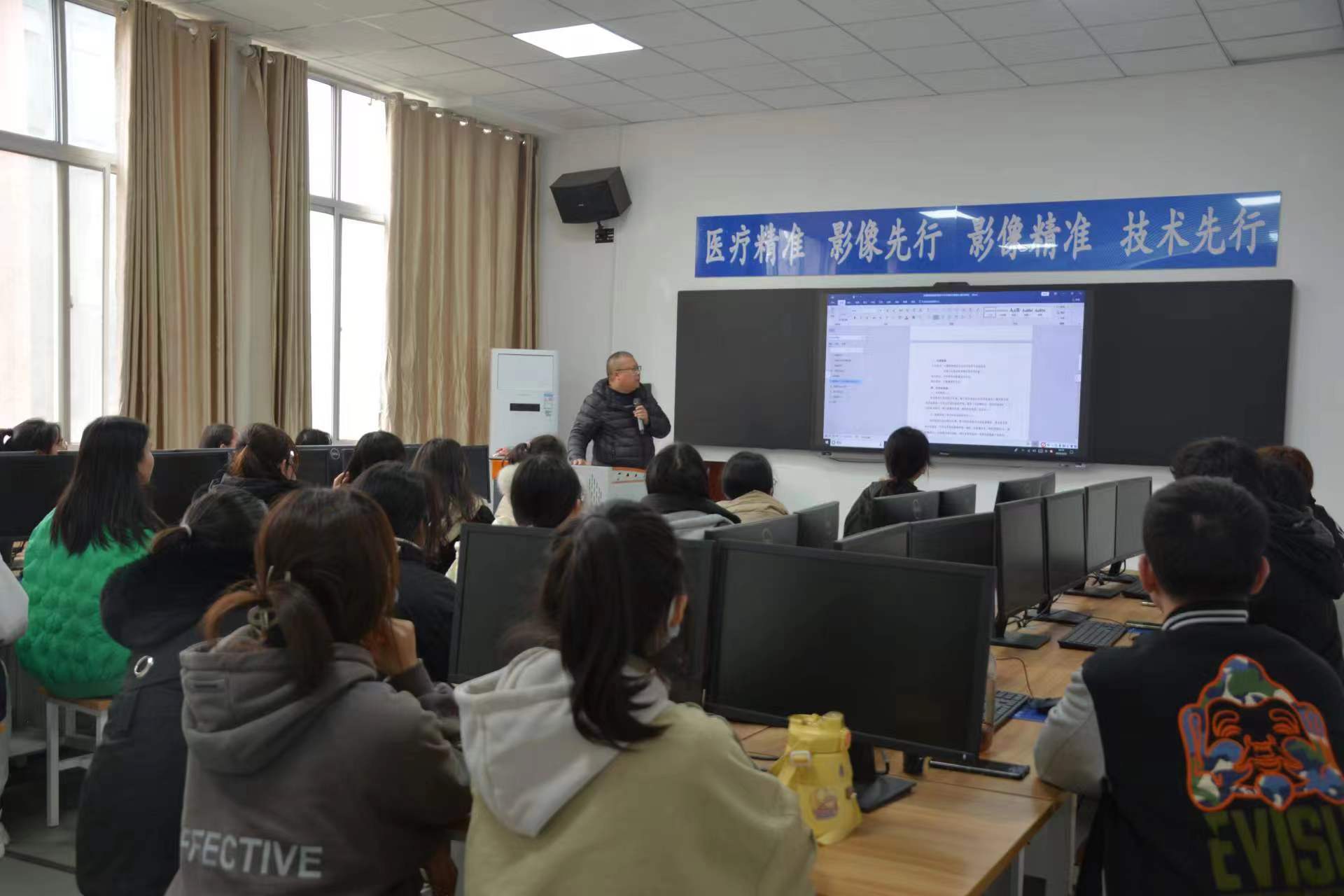 本网讯(图文/太阳成集团tyc539记者站 尚采琳)为动员学生积极参加全国高职医学影像技术专业技能大赛,了解大赛规则、熟悉大赛流程。3月22日下午,太阳成集团tyc539在仲景西区三号教学楼312教室开展了剖析“全国影像技术专业技能大赛”的专题讲座。讲座由医技系影像技术为像社主办,河南省医学影像技术协会委员、南阳市医师协会委员、医技系副主任、副教授崔军胜主讲,为像社社员及21级医学影像技术专业的部分同学参加。