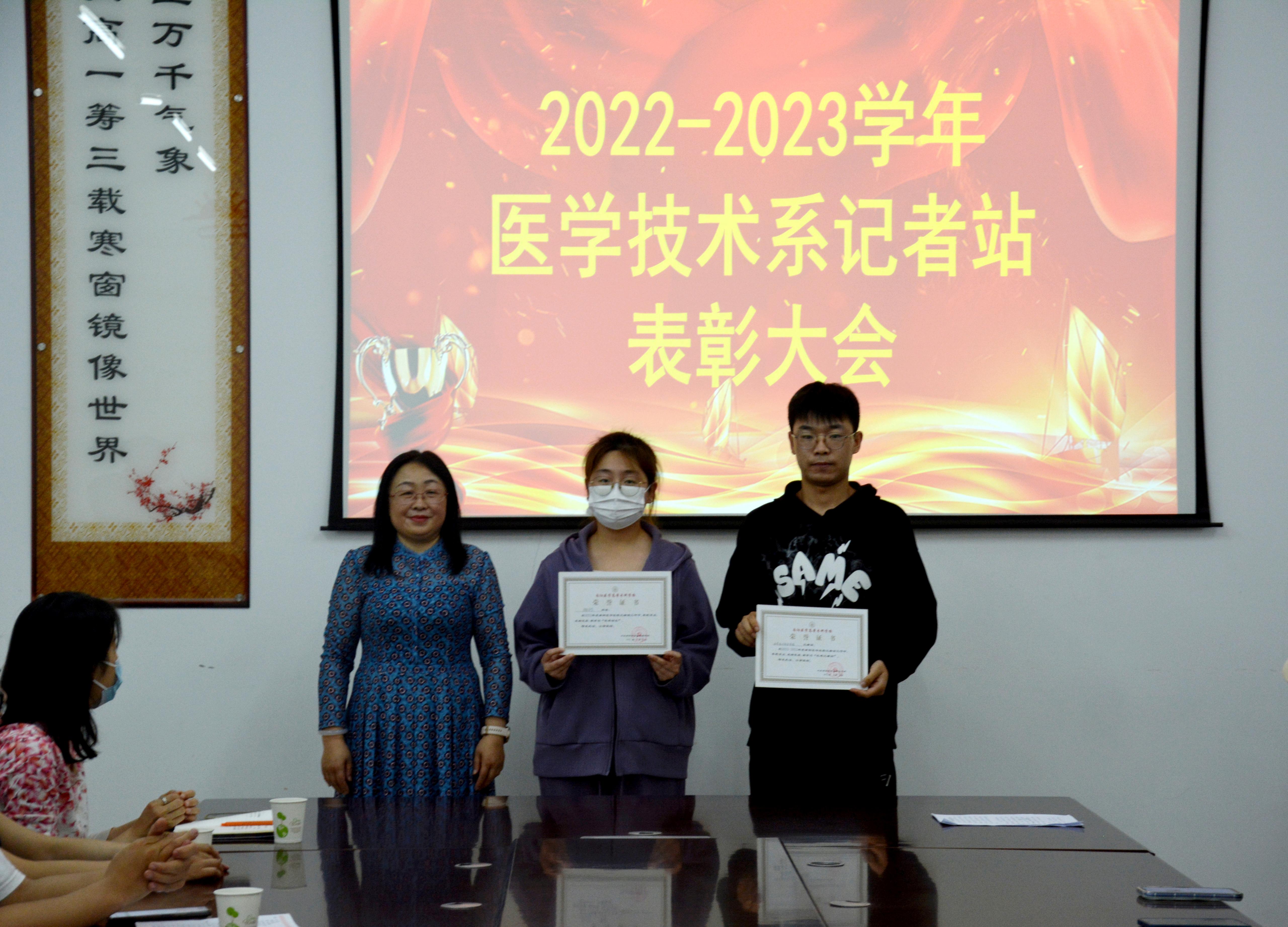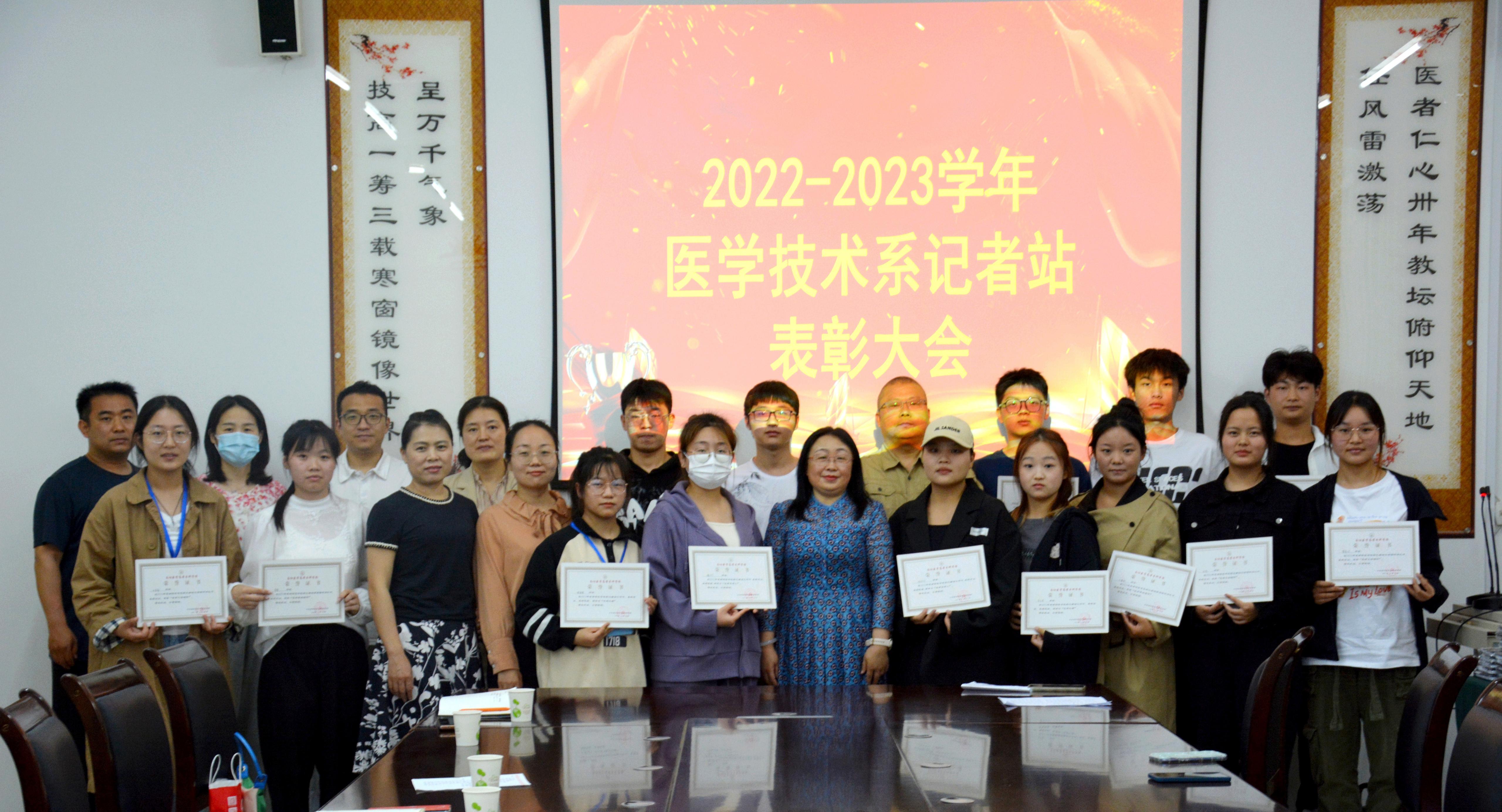 本网讯(图文/太阳成集团tyc539记者站 程蓉蓉 乐蓝蓝)5月22日,太阳成集团tyc539隆重召开2022—2023学年宣传工作表彰大会。医技系主任李玲、副主任崔军胜、副主任闫锡秋、教学办主任樊冰、组织员陈希源出席会议,辅导员、相关负责人和记者站全体成员参加会议。