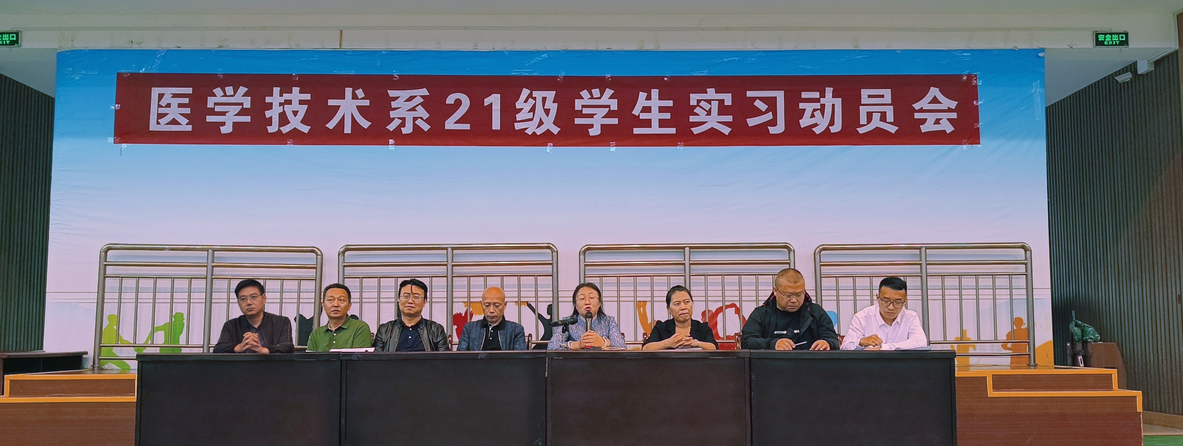 医技系主任李玲在会议讲话中强调,毕业实习是专业教学中的重要实践环节,对提升学生应用能力,加强综合素质培养,具有不可替代的作用,同时对锻炼与提高学生的社会适应能力,顺利择业、就业具有重要意义。要求同学们一是注重安全,警钟长鸣。做好交通、人身、财产、网络等各个方面;二是端正态度,转换角色。充分利用实习机会,刻苦钻研业务,力争“精术”,锻炼提高精通学术和技术;三是合理定位,规划人生。从自身实际出发,积极投身医疗实践,努力成长成才;四是感恩母校,报效祖国。牢记师生之情、同窗之谊,实现人生价值,为祖国医疗事业发展建设积极贡献自己的力量。