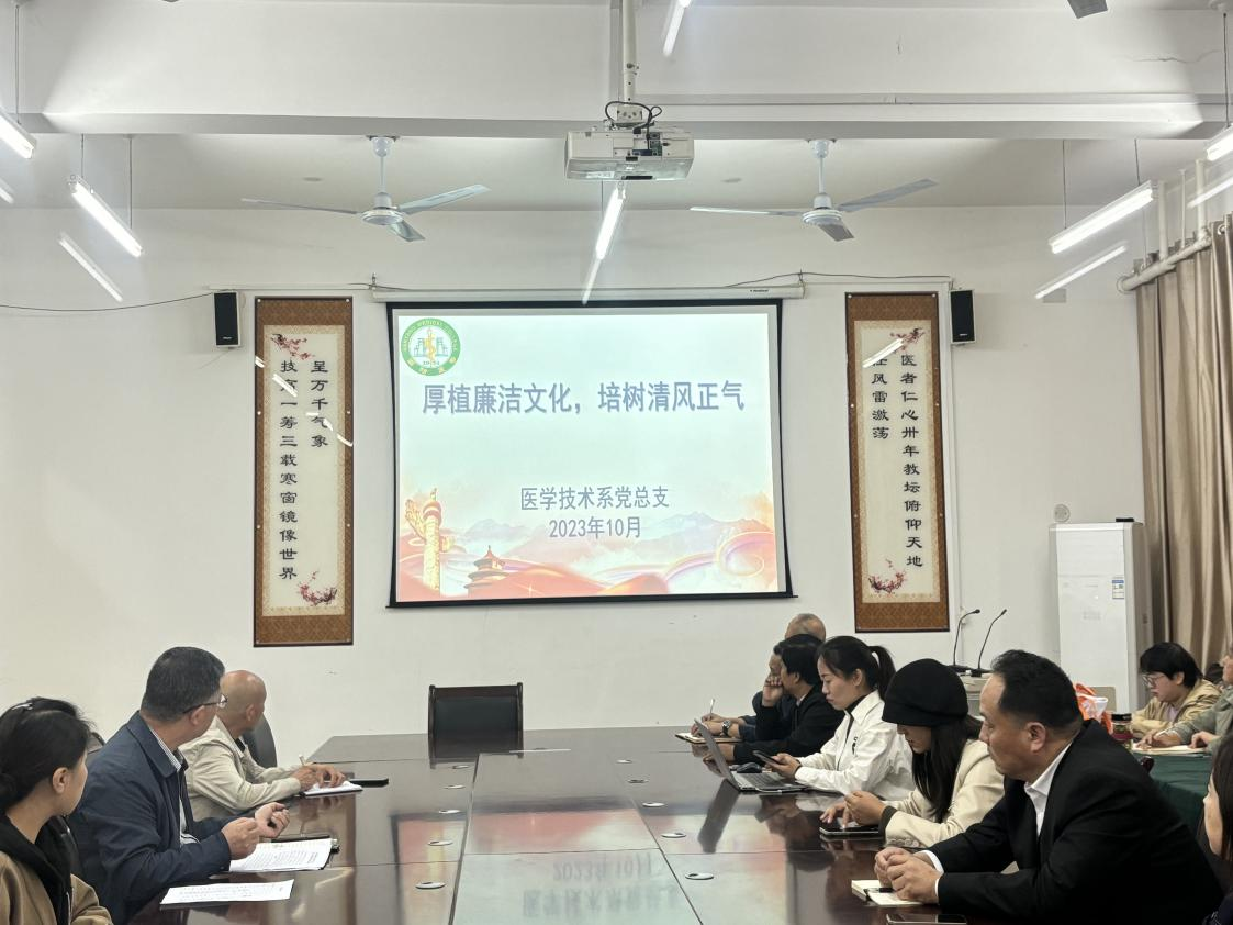 10月11日,系党总支副书记雷呈以“坚守廉洁 杜绝微腐败”为主题,对医技系全体教职工开展廉洁讲座,教职工面对面的交流,分享廉洁教育的经验和心得,深入地了解了廉洁教育的实际应用和意义,进一步增强党性观念,强化廉洁意识