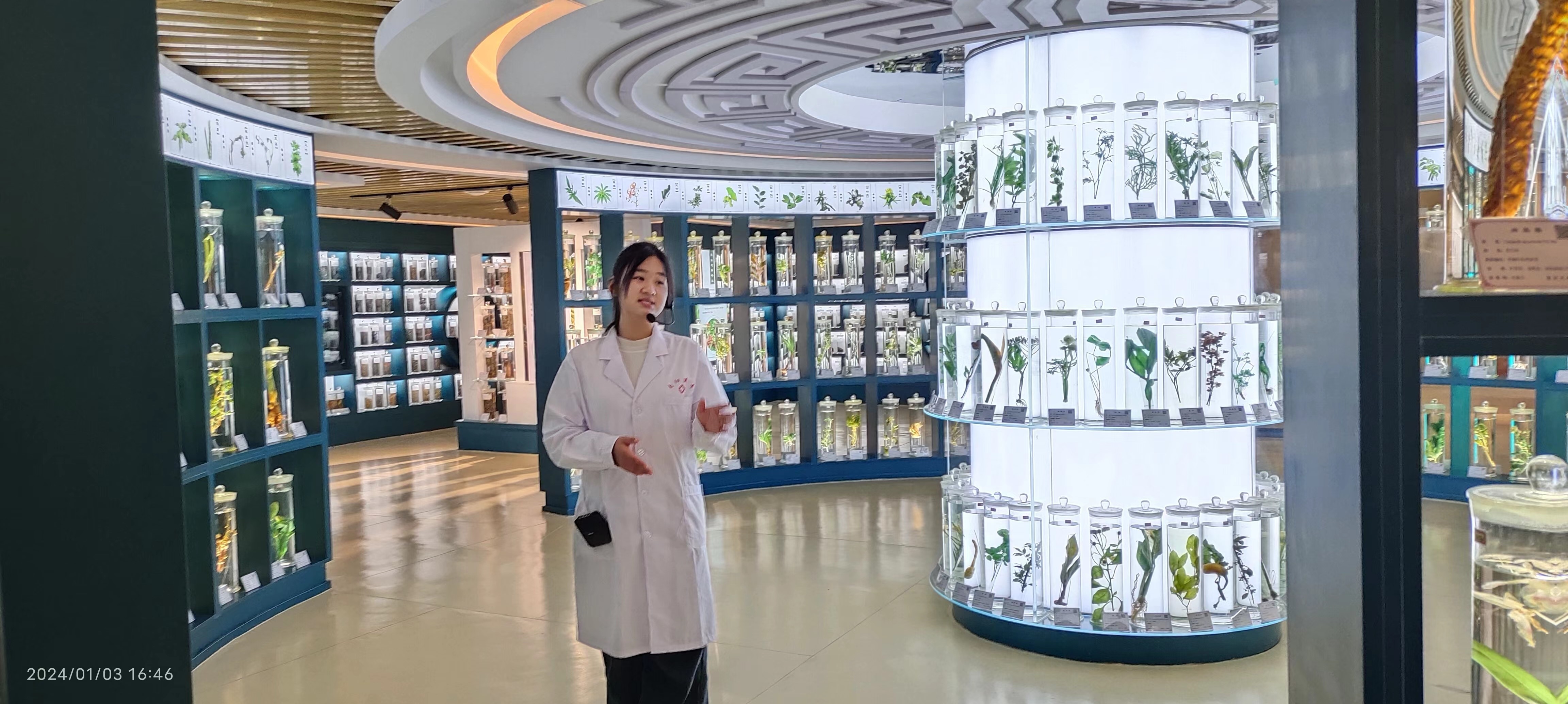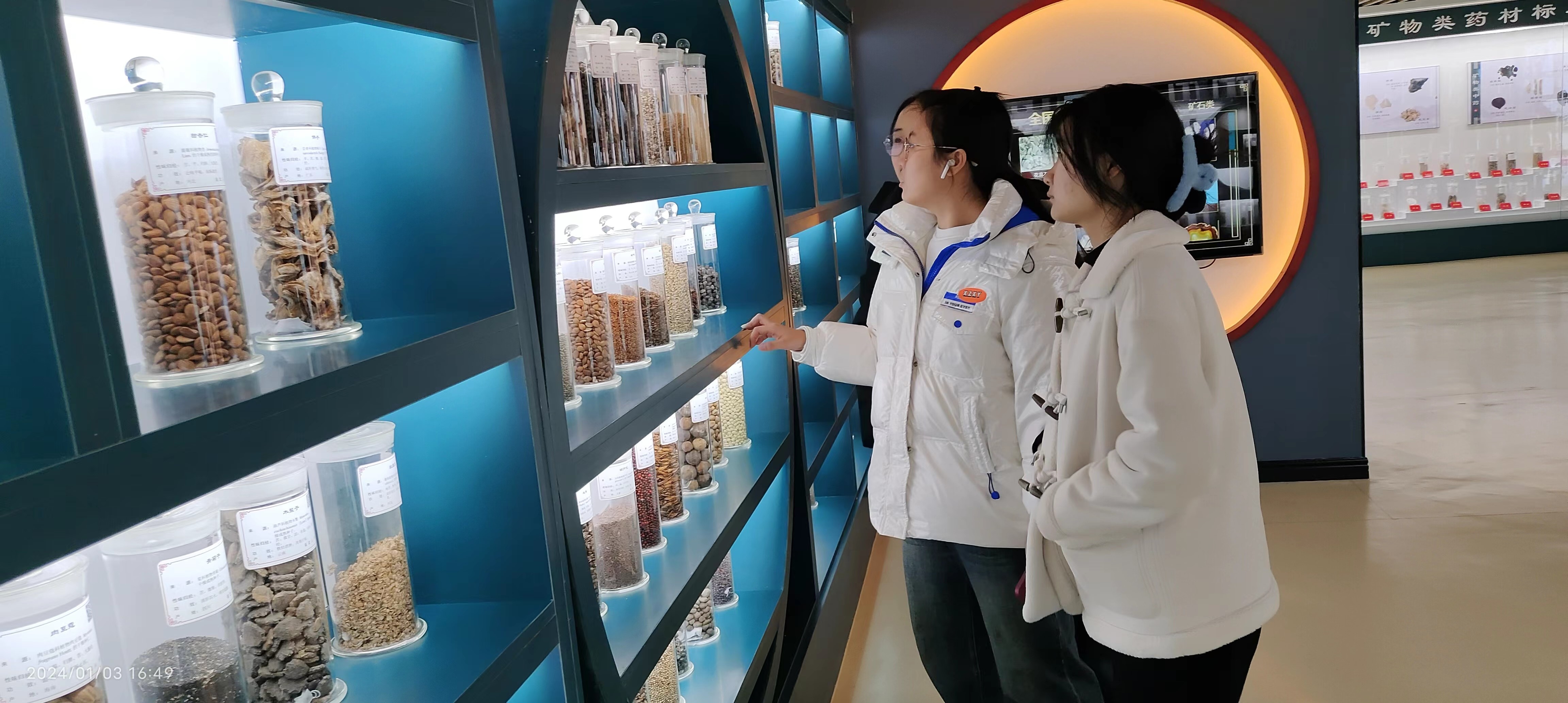 同学们在讲解员的带领下,进入中医药科技馆,依次参观了岐黄之路、仲景文化、针灸学、中药标本、中医科普互动和尾厅六个展区。在中医科普互动展区,讲解员通过操作虚拟仿真设备,向参观者们展示中草药及其性味归经,加深了参观学生对中医药文化的认识。在参观过程中,学生们聆听讲解、观察标本、亲身体验和互动交流,学习中医药的样态以及药用价值,感受中华优秀中医药文化的魅力与光芒。