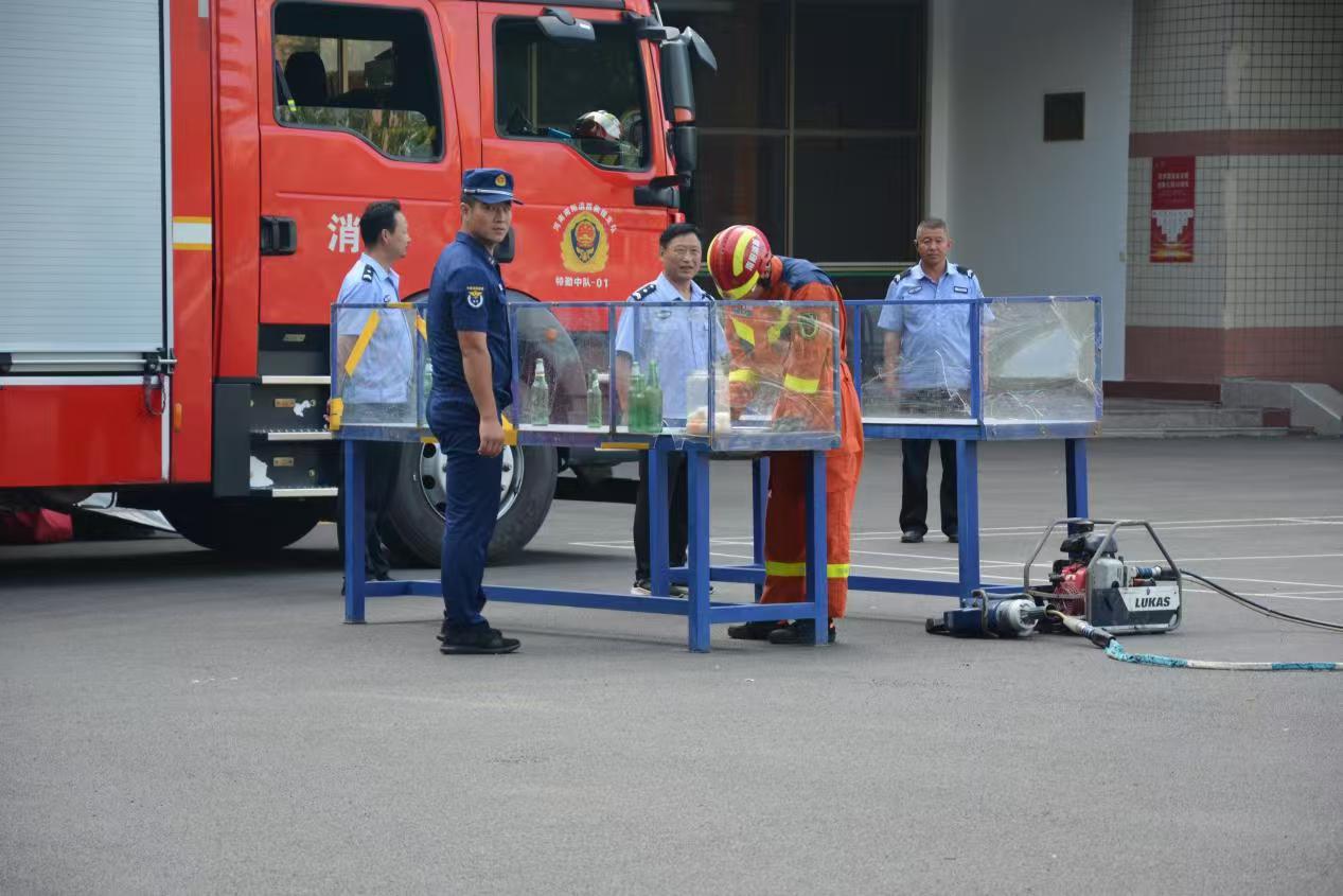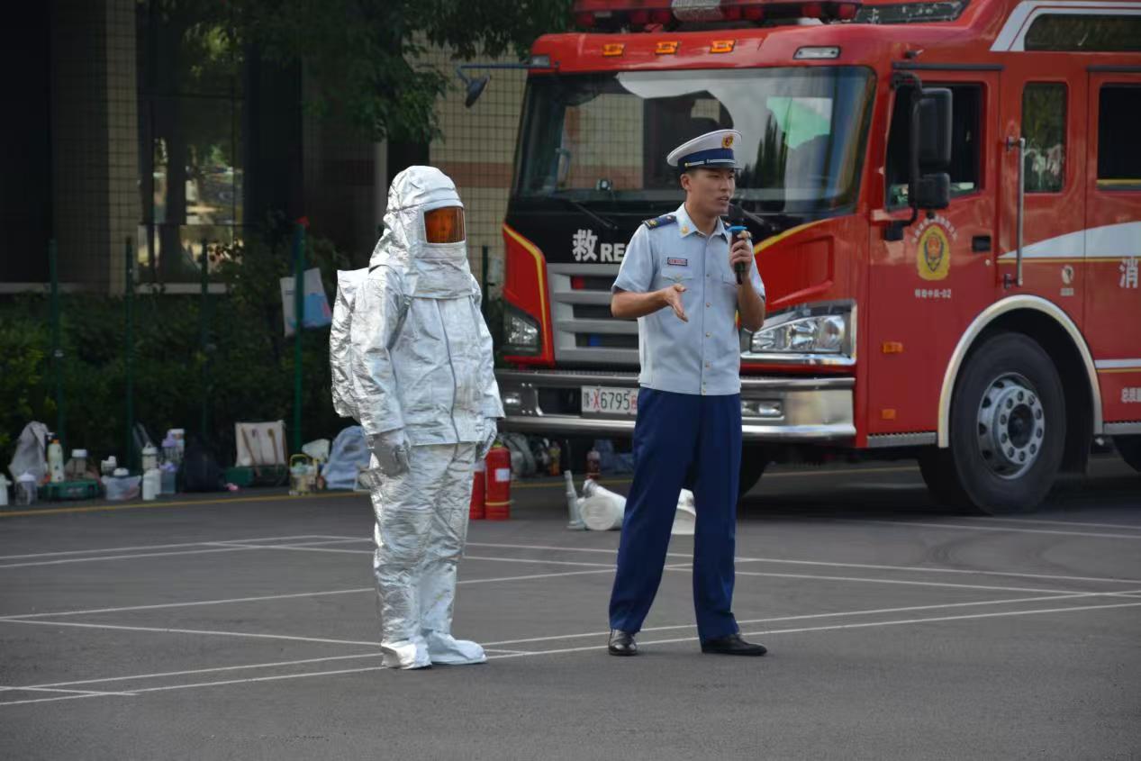 本次消防演练内容主要分为:消防知识和技巧的科普、灭火器实操演练、消防联动演练。活动中,消防员针对学生校园生活中需要的消防安全知识,用通俗易懂的语言,对火灾的成因、预防措施、报警方法、初期火灾的扑救技巧以及逃生自救知识等进行了详细的讲解,并结合真实火灾案例,使学生深刻认识火灾的危害性,警示教育师生要特别注意用火用电安全。消防员还为我们展示了液压扩张器转移乒乓球、搜救犬气味搜索等日常训练科目,师生们被消防员的“硬核技能”折服,由衷的敬佩胆大心细、沉着冷静的“火焰蓝”。
