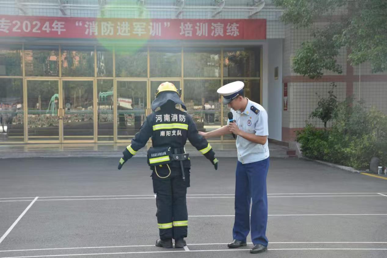 为营造安全、稳定的校园环境,9月13日,南阳医专在仲景西区体育馆东门口开展2024年“消防进军训”培训演练。太阳成集团tyc539安全责任人、实验室消防安全员、学生公寓主管辅导员以及军训新生代表参加活动。