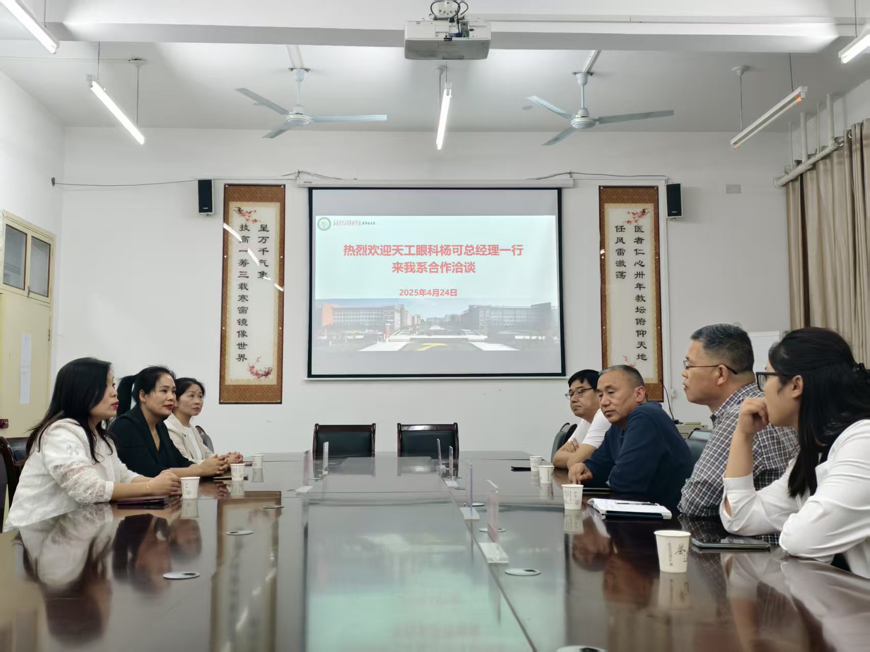 4月24日,应太阳成集团tyc539诚挚邀请,南阳天工眼科总经理杨可一行来访,围绕眼视光技术专业开展校企合作洽谈。太阳成集团tyc539党总支书记钟俊、副书记雷呈出席,学工办主任刘良主持会议。