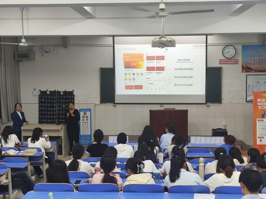 毛源昌眼镜作为行业标杆企业,何建华在宣讲中详细介绍了企业百年传承的品牌实力与创新成果。此次计划招聘眼视光技术专业学生从事验光师、视光顾问等岗位实习,并提供合理薪资和系统化职业培训。企业代表特别提到,往届南阳医专毕业生在企业实习期间表现优异,多名学生因专业素养突出、责任心强,最终留任成为技术骨干,展现了校企协同育人的显著成效。