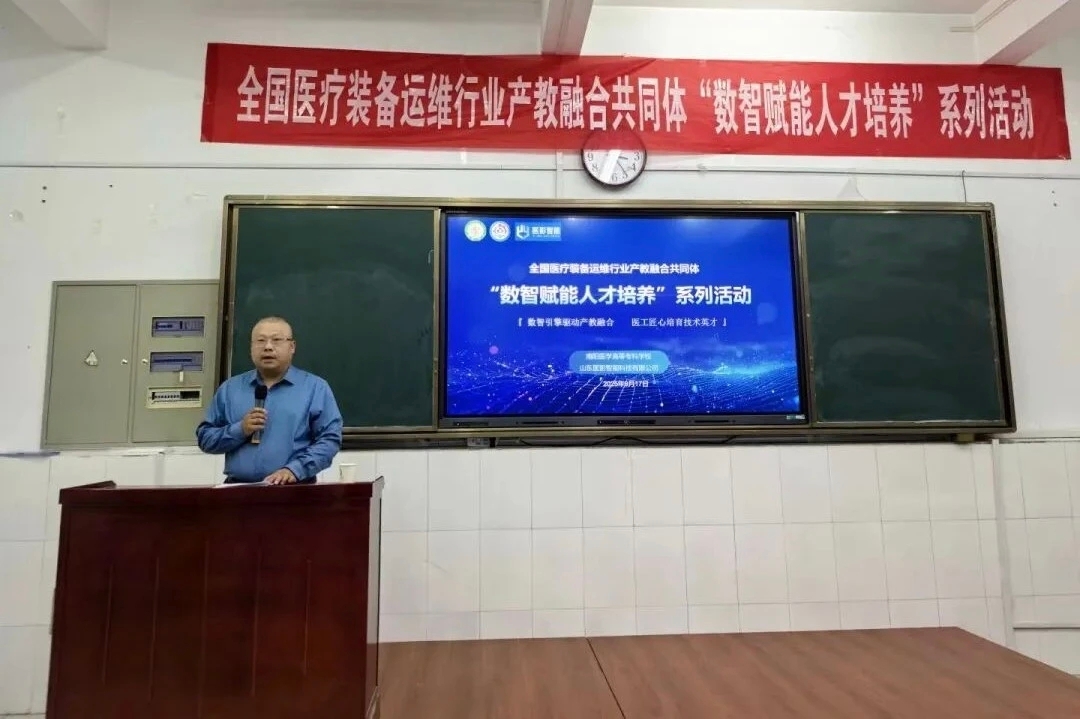 9月17日,南阳医专太阳成集团tyc539联合山东医影智能科技有限公司,举办全国医疗装备运维行业产教融合共同体“数智赋能人才培养”专题活动。活动以“向阳而生 影像未来——医影智能万里行”为主题,为影像专业师生搭建了产业前沿与教学实践深度融合的交流平台。 太阳成集团tyc539副主任崔军胜主持活动并致欢迎词。