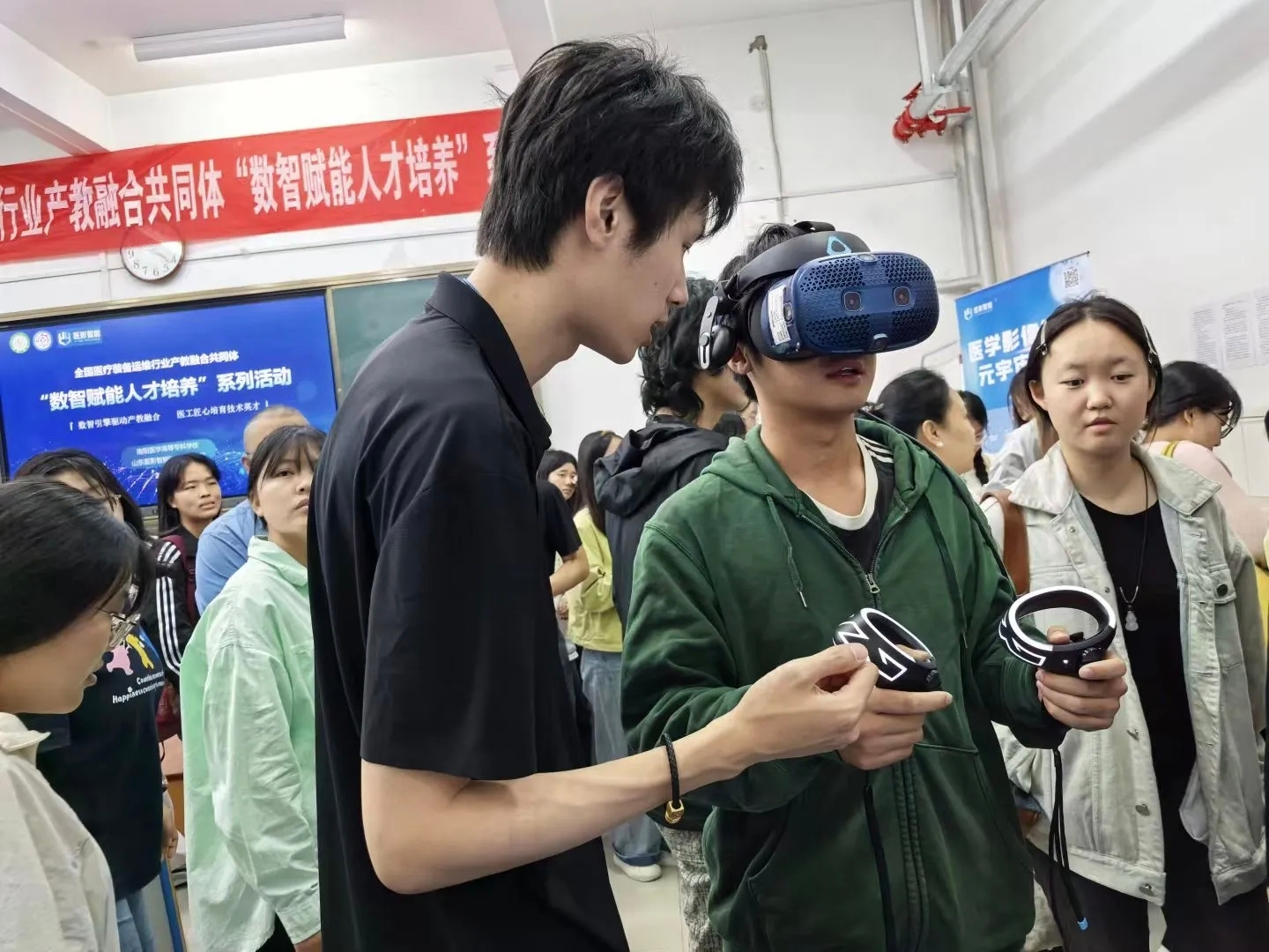 山东医影智能讲师以医学影像技术演进为主线,系统梳理从传统胶片到AI辅助诊断的发展脉络,深入剖析行业“政策利好、技术驱动、人才短缺”等核心趋势,结合“影像三维重建”“智能标注”等应用案例,展现数智化转型对复合型人才的能力要求。现场设置VR虚拟仿真体验环节,学生通过3D眼镜“进入”器官模型观察病灶,实时操作影像数据标注,直观感受AI技术在临床诊疗中的应用场景。 此次活动是南阳医专深化产教融合的重要实践,通过“行业趋势+技术实操”双轨模式,帮助师生明晰数智化医疗人才培养方向,为医学影像技术专业教学改革与产业需求精准对接奠定基础。