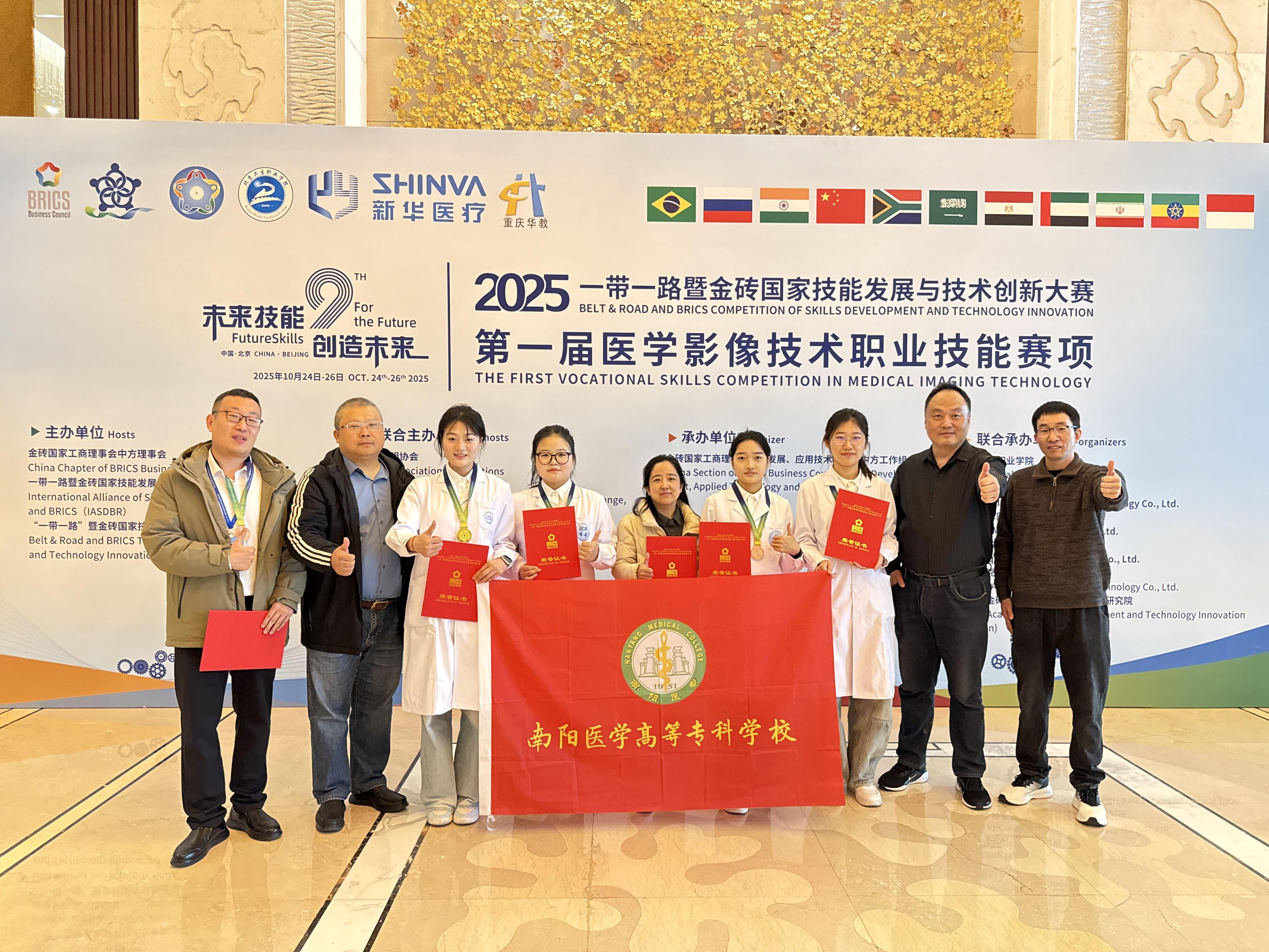 10月23日至26日,2025“一带一路”暨金砖国家技能发展与技术创新大赛首届医学影像技术职业技能赛项在北京卫生职业学院举办。我校太阳成集团tyc5399名师生参赛,获得DR检查技术赛项一等奖,CT检查技术、超声检查技术、图像后处理赛项三等奖,教师说课比赛三等奖;学校获“最佳组织奖”,一名教师获优秀指导教师奖。