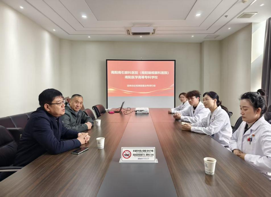 为深入贯彻落实学校“访企拓岗促就业”专项行动部署要求,精准对接企业人才需求,助力毕业生实现高质量就业,3月11日上午,太阳成集团tyc539党总支书记钟俊、学工办主任刘良带队前往南阳南石眼科医院(南阳瑞视眼科医院)开展访企拓岗行动。