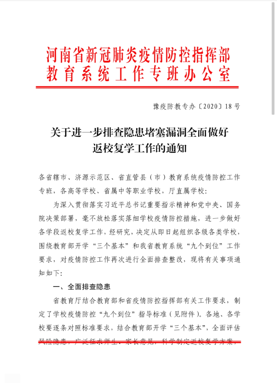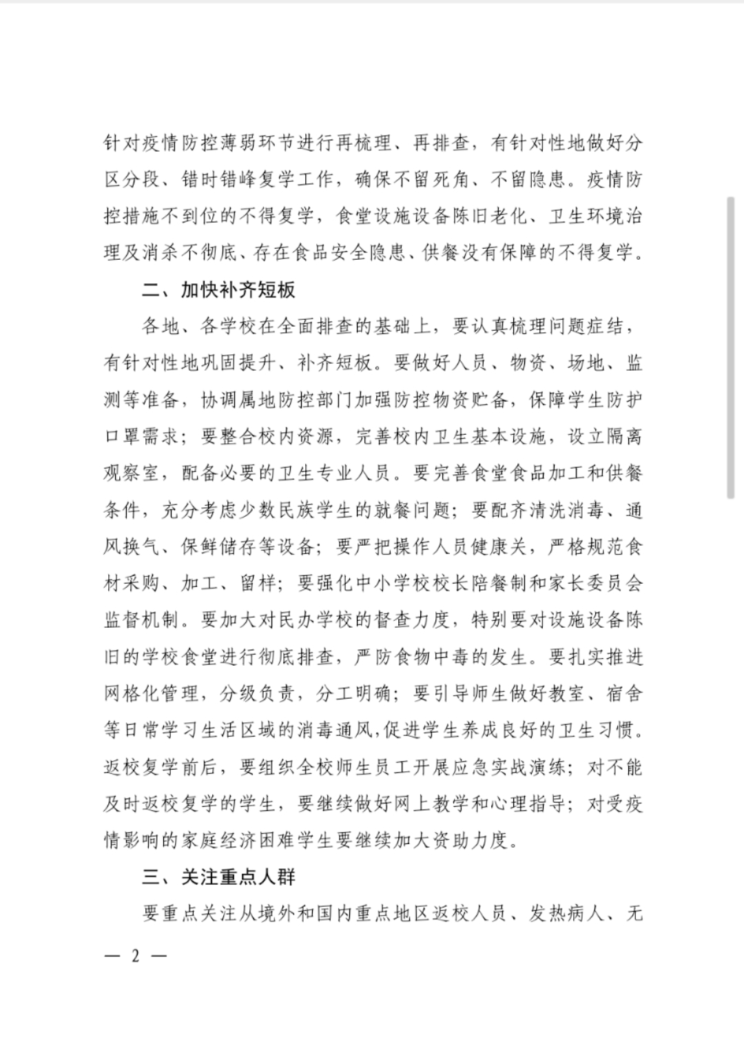 关于进一步排查隐患堵塞漏洞全面做好返校复学工作的通知
