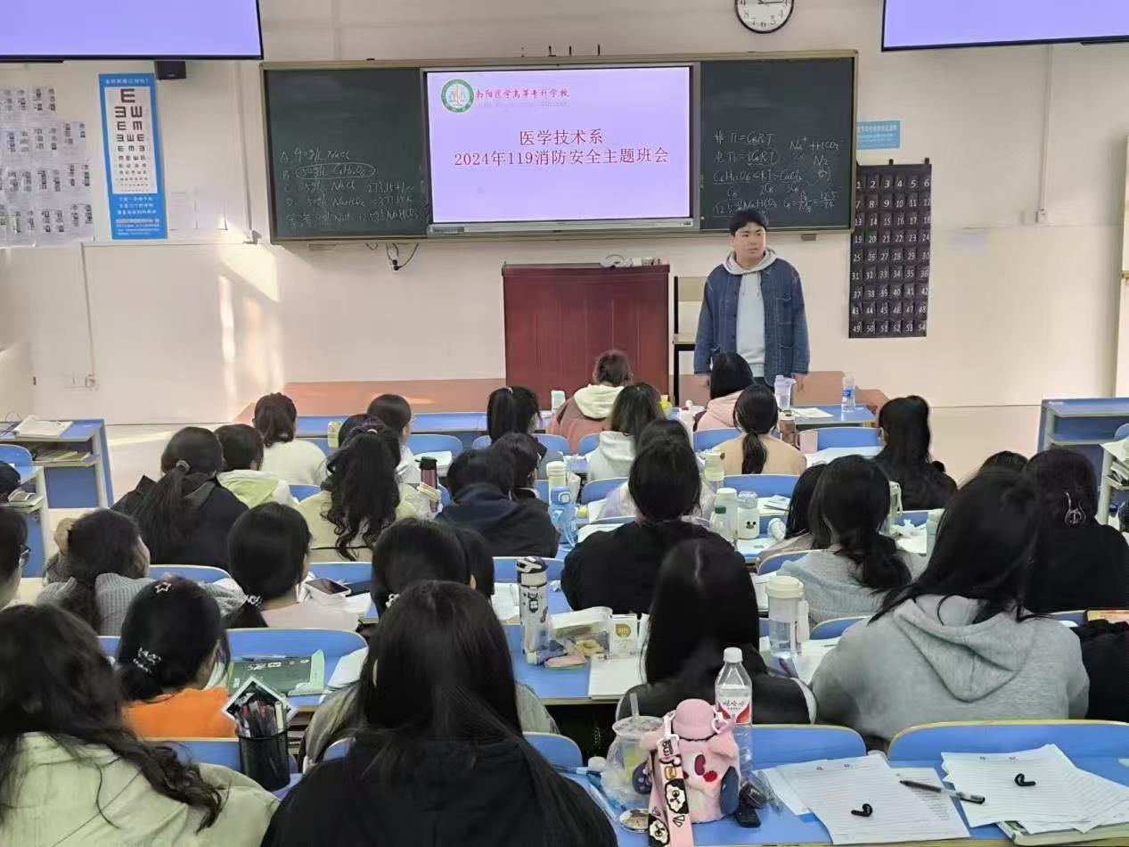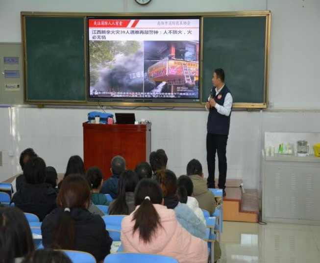 11月27日,太阳成集团tyc539邀请保卫处及南阳市消防技术协会老师进行消防安全知识培训,让学生充分认识火灾的危险性,掌握灭火逃生的技巧,提高学生预防火灾的能力。